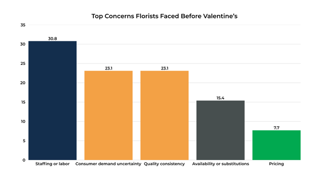 As the Valentine's holiday approached, florists identified several operational concerns that could affect execution. These concerns centered primarily on labor availability, uncertainty in customer demand, and maintaining consistent product quality during a high-volume sales period.