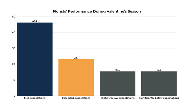 Nearly 70% reported that their Valentine's performance met or exceeded expectations, suggesting that planning and supplier coordination generally aligned well with customer demand.
