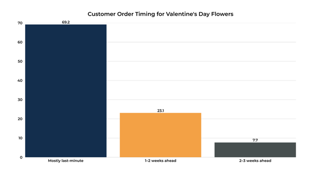 Nearly 70% reported that most customer orders arrived at the last minute, reinforcing a long-standing pattern in floral retail trends and customer purchasing behavior.