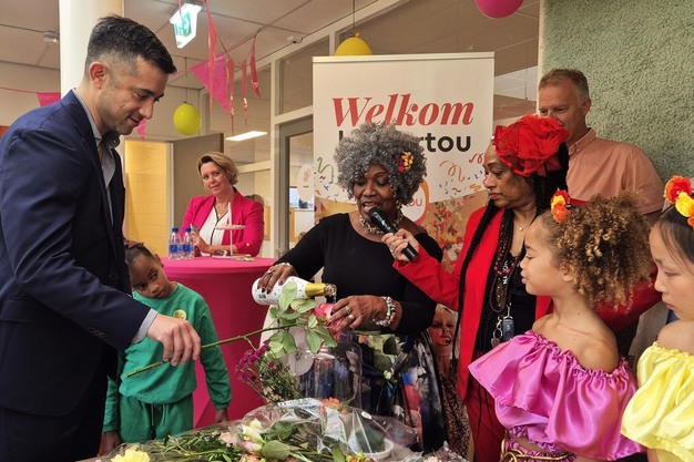 © Charles LansdorpBaptism of the Rosa Amsterdam 750 with Councillor Alexander Scholtens, Gerda Lenten Havertong, Riek Karg (Radio Mart) and, in the background, Peter Schrama (United Selections) and Laura Wiersma (Regional Director, Partou childcare organisation).