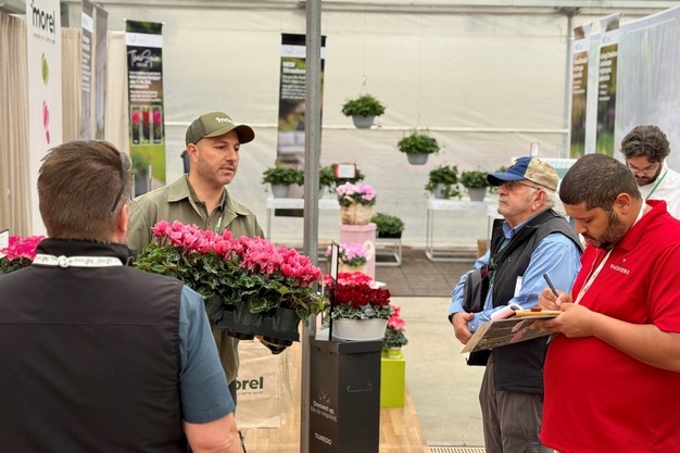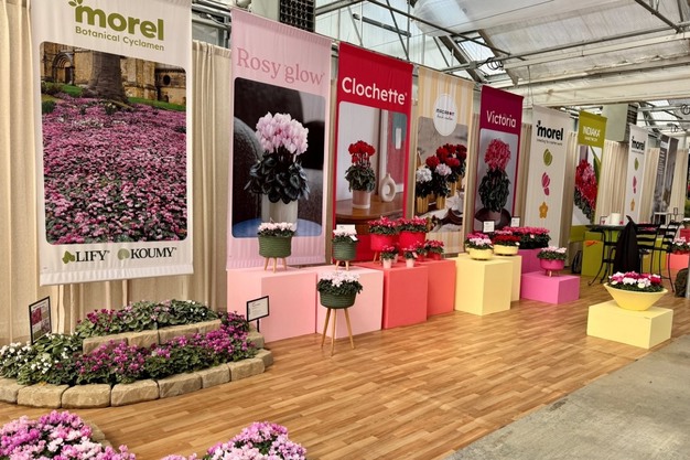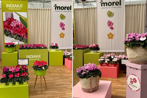 Under a great Californian sunshine, Morel Flowers is exhibiting a complete selection of Cyclamens at Ball Horticultural Company, host of the Californian Spring Trials 2026. "With over 1000 visitors scheduled for the event, this yearly 'rendez-vous' allows to showcase novelties that have great potential in the North American market. Among the highlights in the Cyclamen persicum range, we note a strong interest on special varieties such as Clochette, featuring incredible long-lasting bell-shape flowers. Absolu de Morel, the 1st scented mini cyclamen, receives a lot of attention when accompanied by the newly introduced large flowers and fragrant Absolu Sublima. In addition to that, the Indiaka serie renowned for its excellent outdoor performances is a show-maker through his full declination of flower size: mini, midi and maxi."