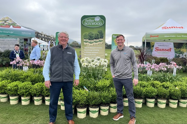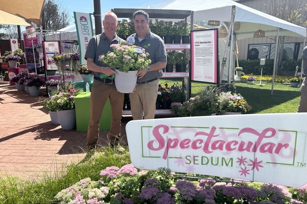 Global Product Manager for Perennials, Cor de Jong (left) and Global Director of Sales Sean Valk (right) are holding a seed alternative to vegetative S. spectabile. Sedum Spectacular offers good plug quality, seeding uniformity, and a strong structure to resist breakage during transport. It's already an award-winning variety.