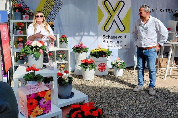 The Latin American sales team of Camilo Cano (left) and Camile Valle (right) think the new osteospermum is a top choice for cool-season color. Akila Sunshine Yellow is the first-ever yellow osteospermum from seed, with a compact habit and no-pinch in production. It flowers within a 7- to 10-day window without vernalization.