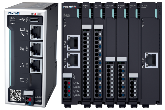 Bosch Rexroth's ctrlX CORE controller (left) and ctrlX IO Coupler (right)