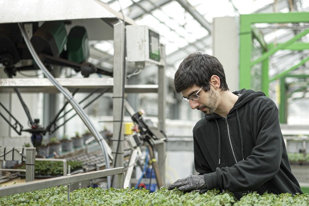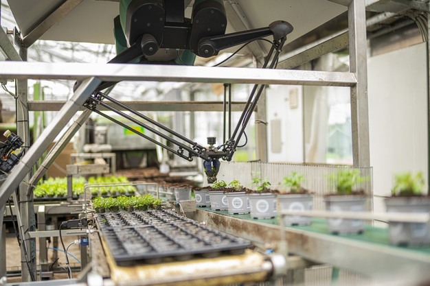 A major purpose of investing in a collaborative robot was to relieve employees from some of the repetitive tasks common in many greenhouses such as planting cuttings, moving pots around, or packing vegetables in a packing facility.