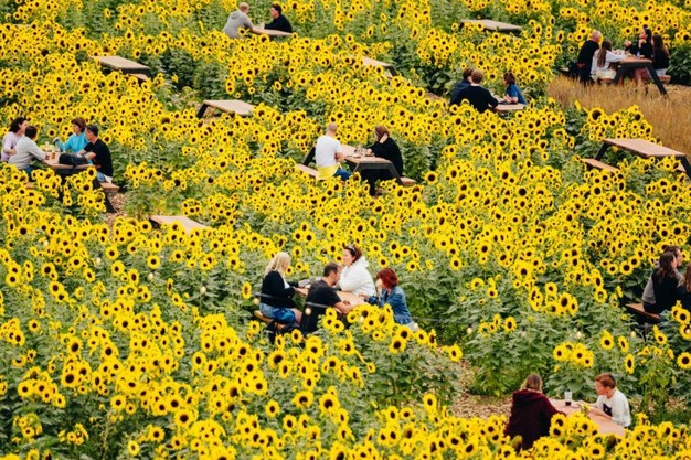 A field of sunflowers you don't just look at but step right into. A place where people laugh, unwind and soak it all in. Somewhere between the music and the soft evening light, they start to dance. For the visitor, it feels almost magical. To visitors it feels almost magical.