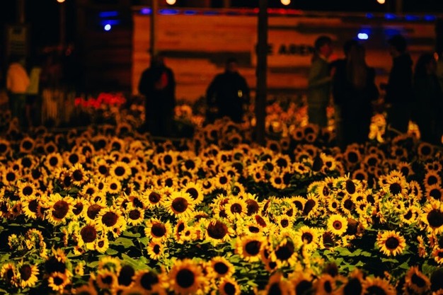 The choice for sunflowers is no coincidence. "They're iconic, they fit perfectly with Campo Solar's identity and they're tough. Their height adds structure and creates a space people can get lost in."