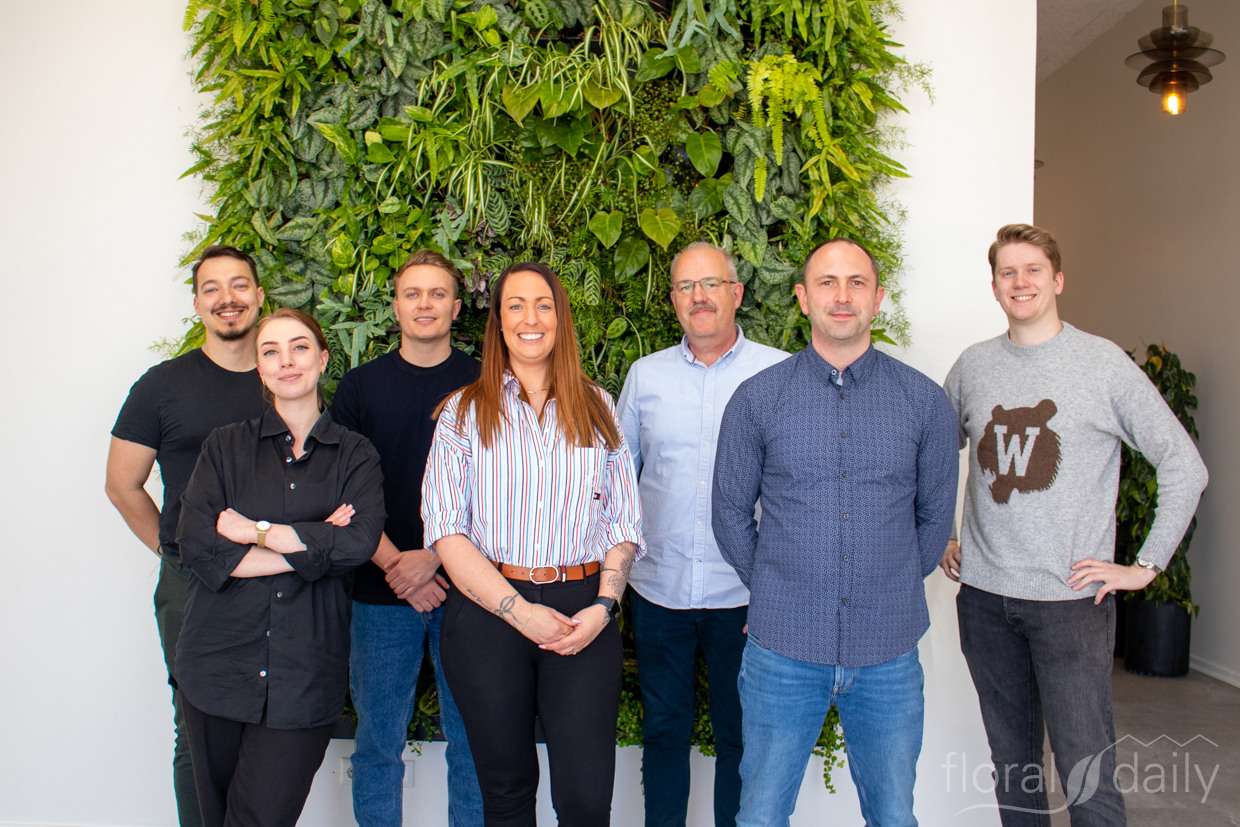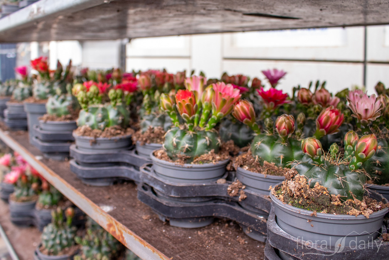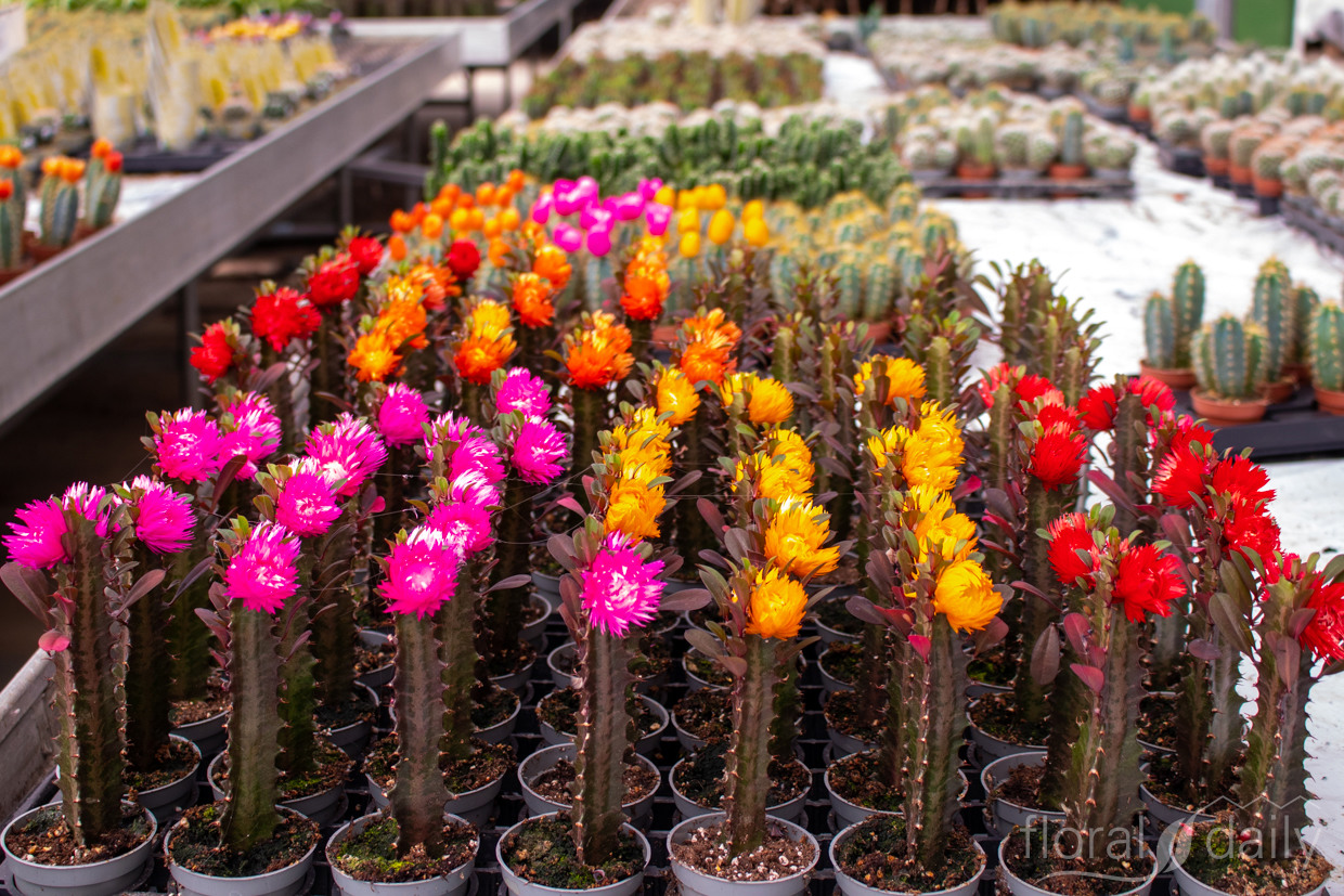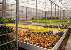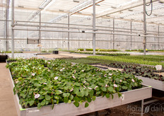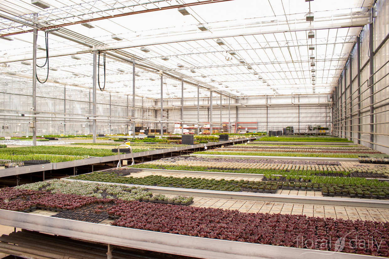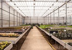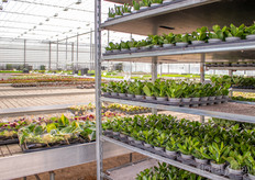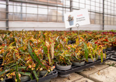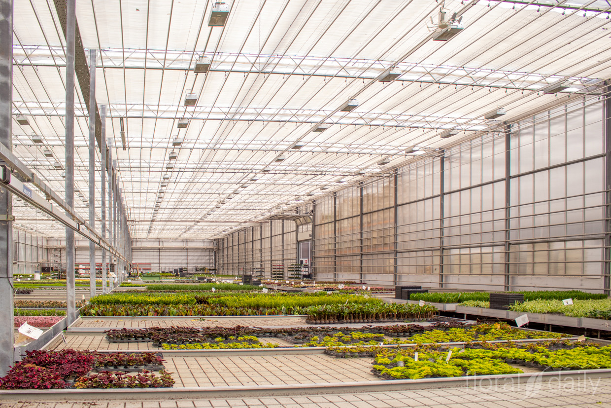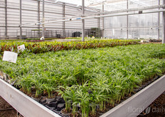 Ove Lundager in the greenhouse with Philodendron Pink Princess Marble (left) Philodendron Ring of Fire (right)