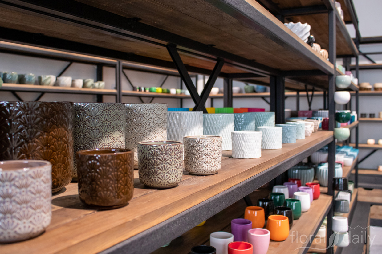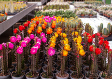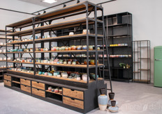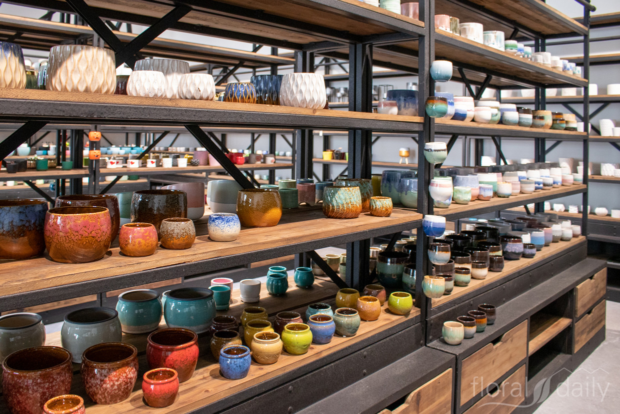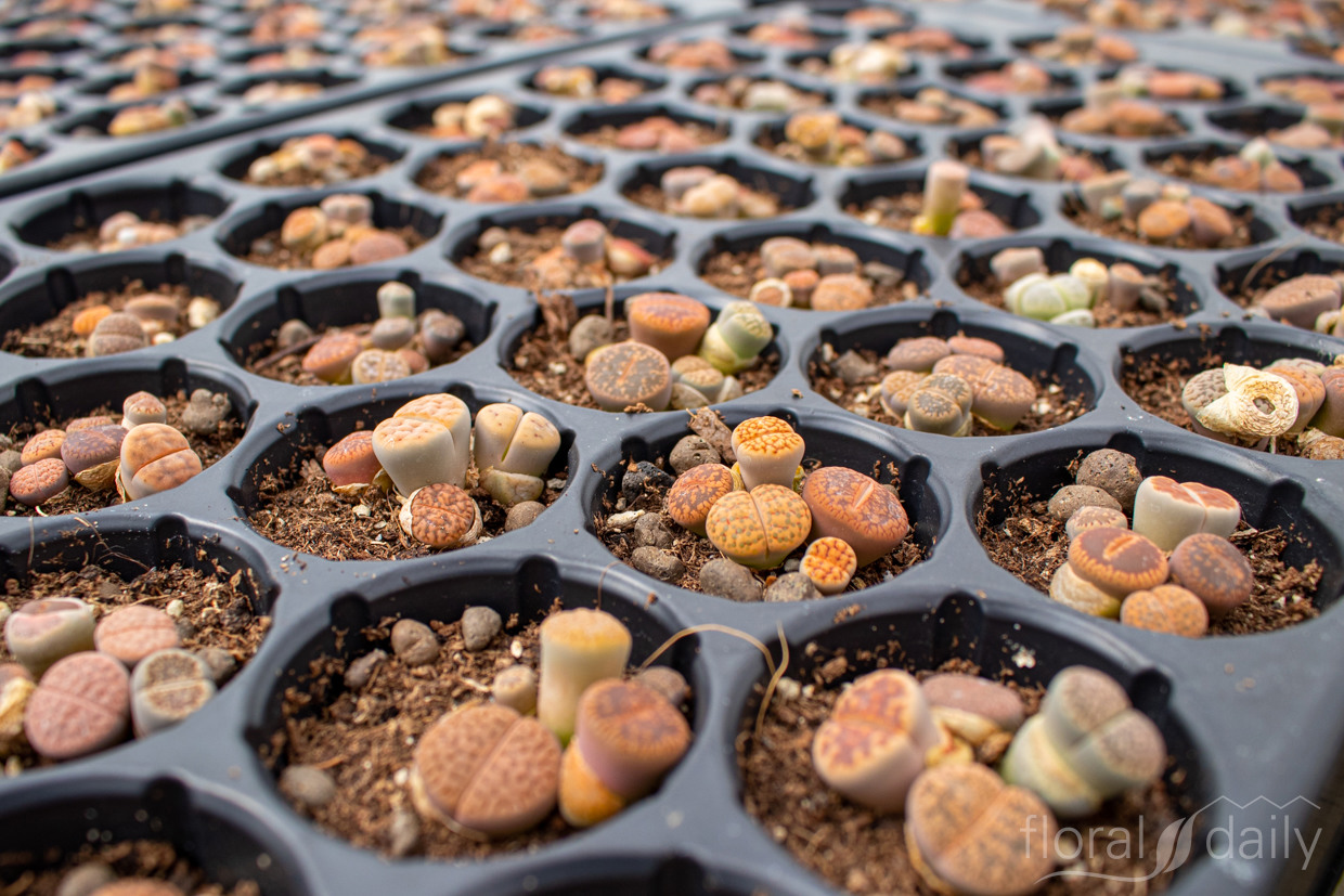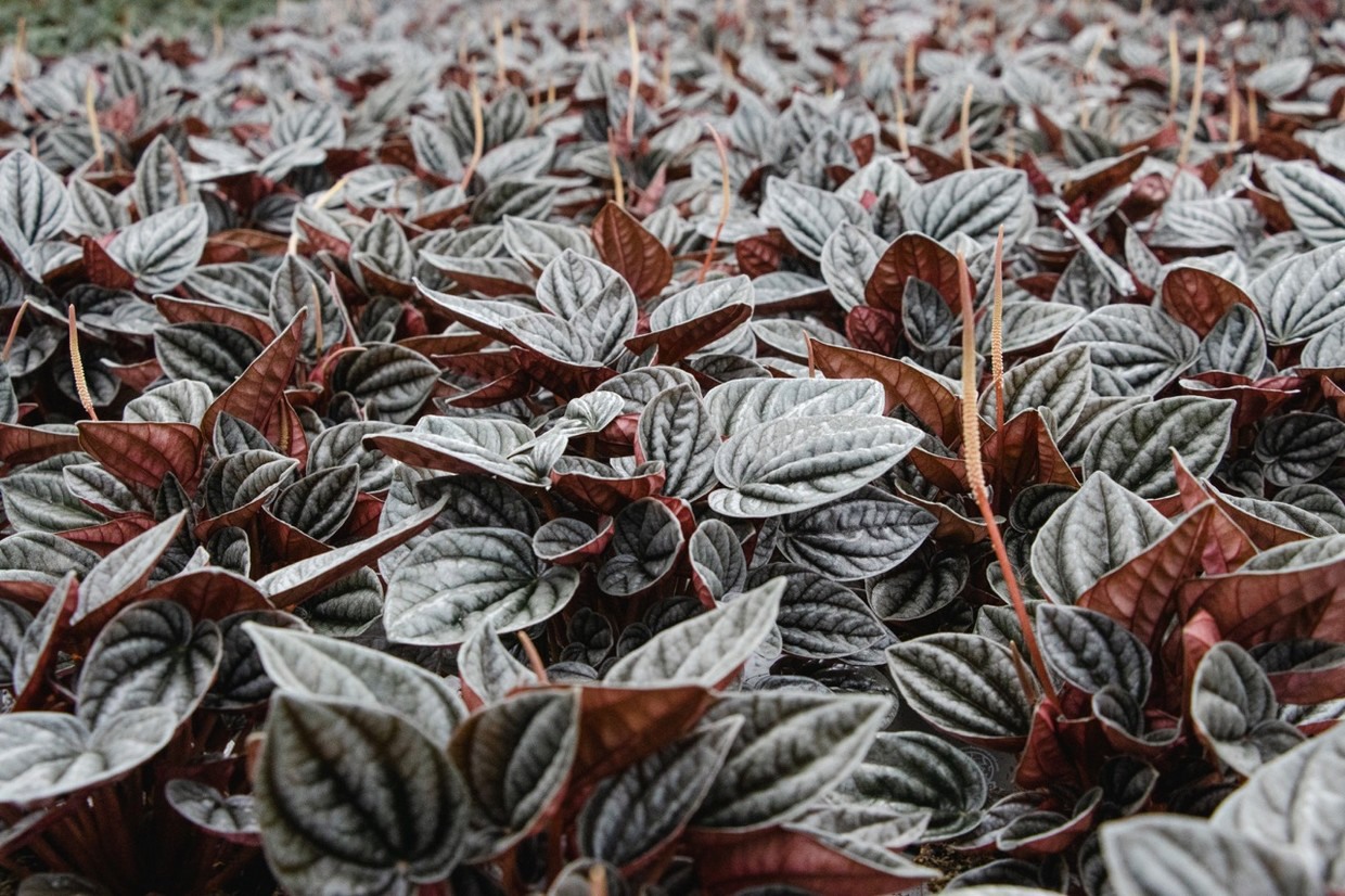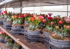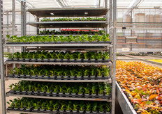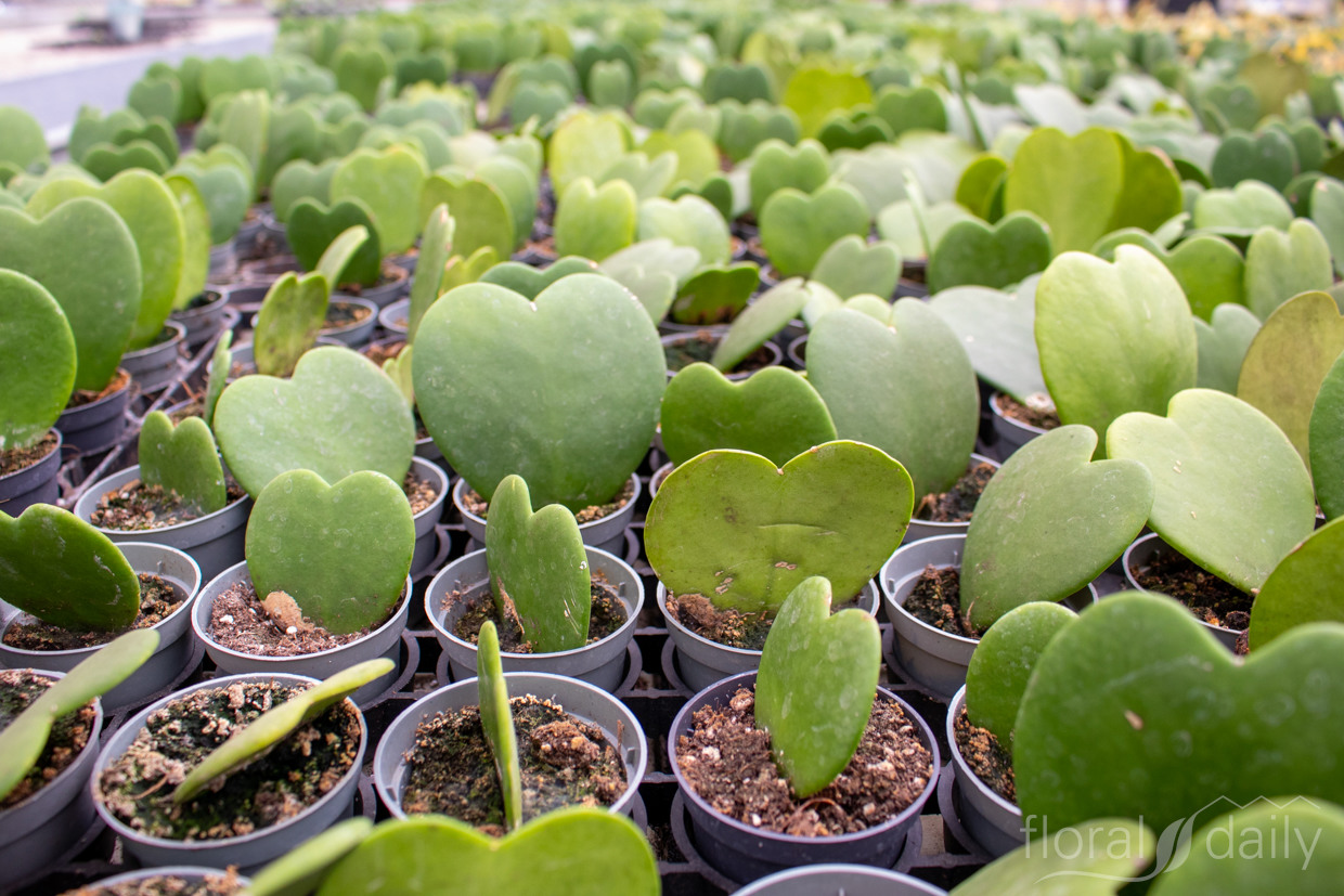 Ove Lundager in the greenhouse with Philodendron Pink Princess Marble (left) Philodendron Ring of Fire (right)
