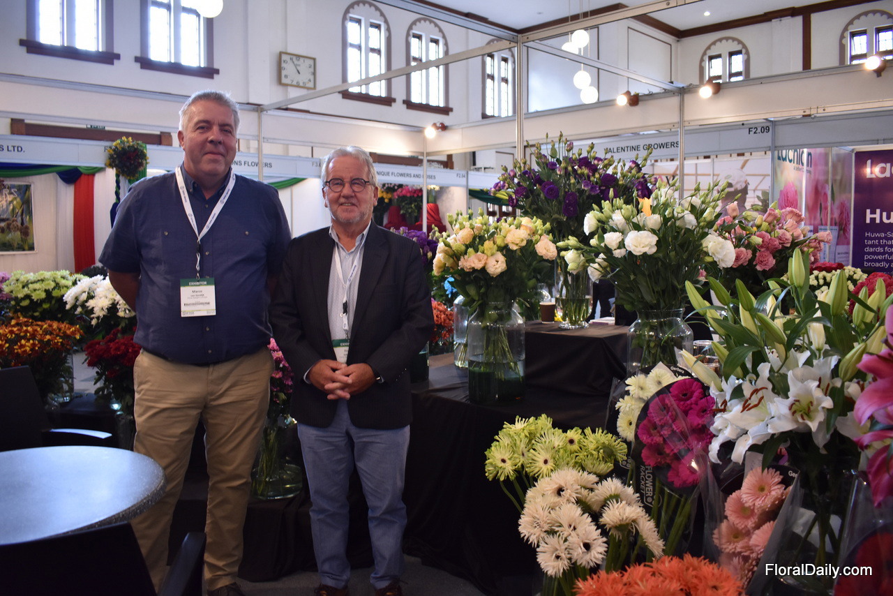 Marco van Sandijk en Frans Ederveen van Flora Delight Ltd. Next to the lisianthis, which is one of their top products that they are producing, among hydrangea, chrysanthemum, and gerberas. More on this later on FloralDaily.