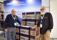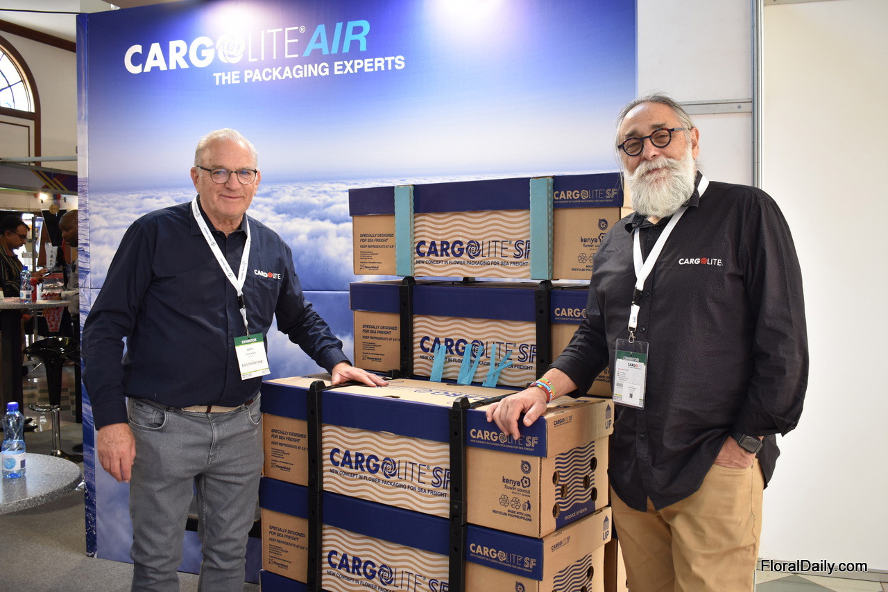 John Kowarsky and Amnin Zamir of Cargolite presenting their new seafreigt packaging. See the top carton with cardboard frame. See here to learn more about Cargolite in this FLoralDaily article: https://www.floraldaily.com/article/9532055/cargolite-is-more-than-just-another-carton-it-s-a-new-packaging-concept/