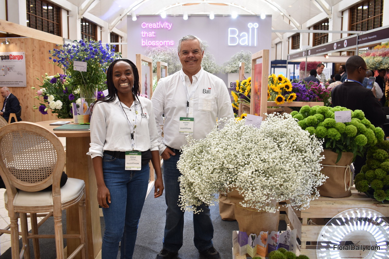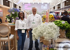 Mildred Anyango and Alejandro Umaña of Ball Kenya. They are supplying Kenyan growers for over 11 years, but registered Ball Kenya 3 years ago. They are standing next to Polar Bear, a gypsophila with large flowers that is already grown by many farms in Kenya. And they recently entered Ethiopia, supplying some large farms and they are expected to grow in this country in the future.