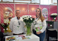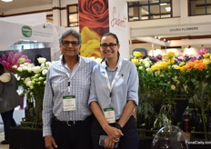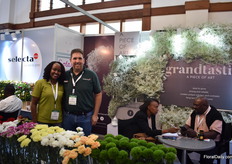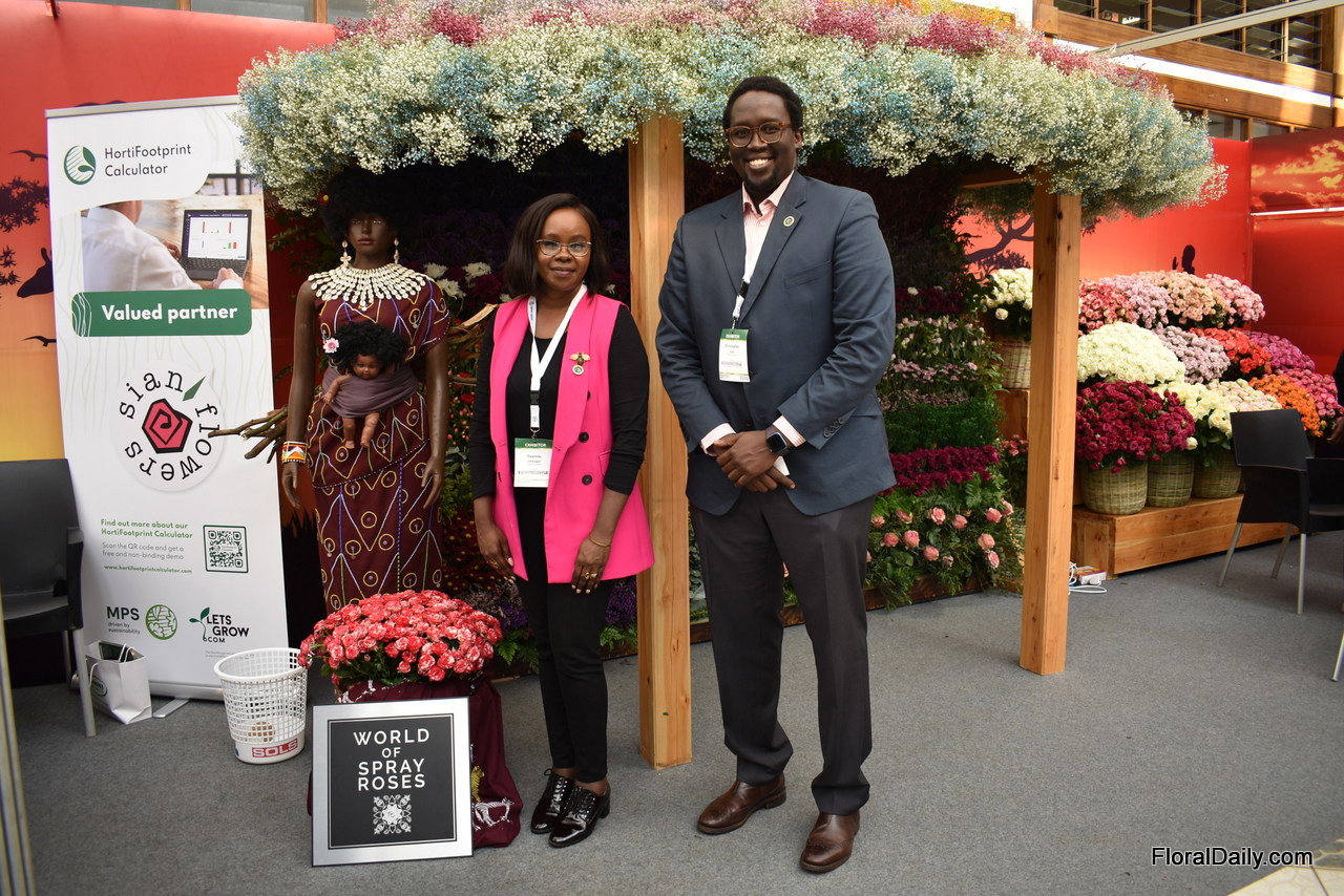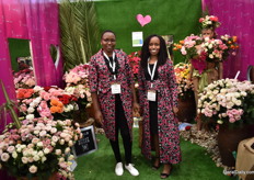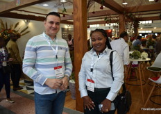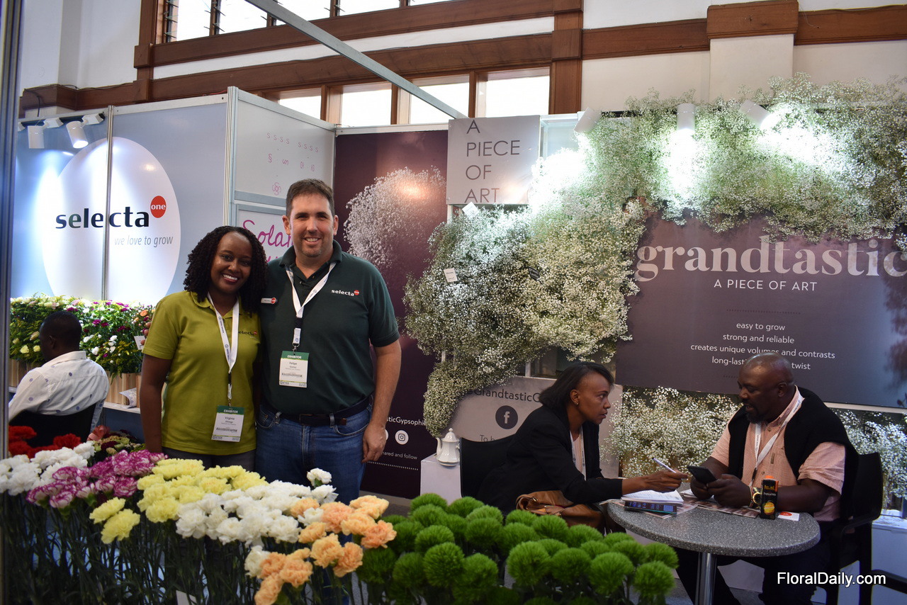 Virginia Gitonga and Felipe Gomez of Selecta Cut Flowers. highlight at their booth is Grandtastic, “a gypsophila that is giving more quality in terms of flower side, number of flowers, stem weight and stem length.”