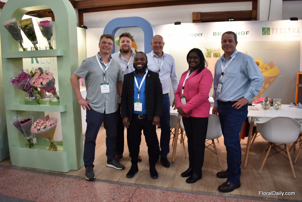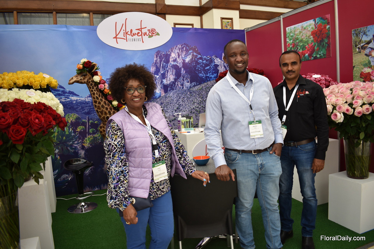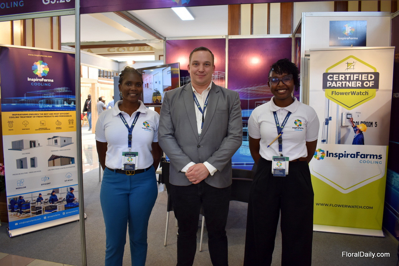 Youra Engel, Dave Hoekstra and James Kasyula. Dave and Philip Mambo (not in the picture as he was walking around at the exhibition) are the directors, Youra Logistic manager and James is CQR (Control Quality Report) manager. In 2021 they established this company that consolidates, does the documentation and Quality Control. “We are your eyes on the ground.” More on this company later on FloralDaily.