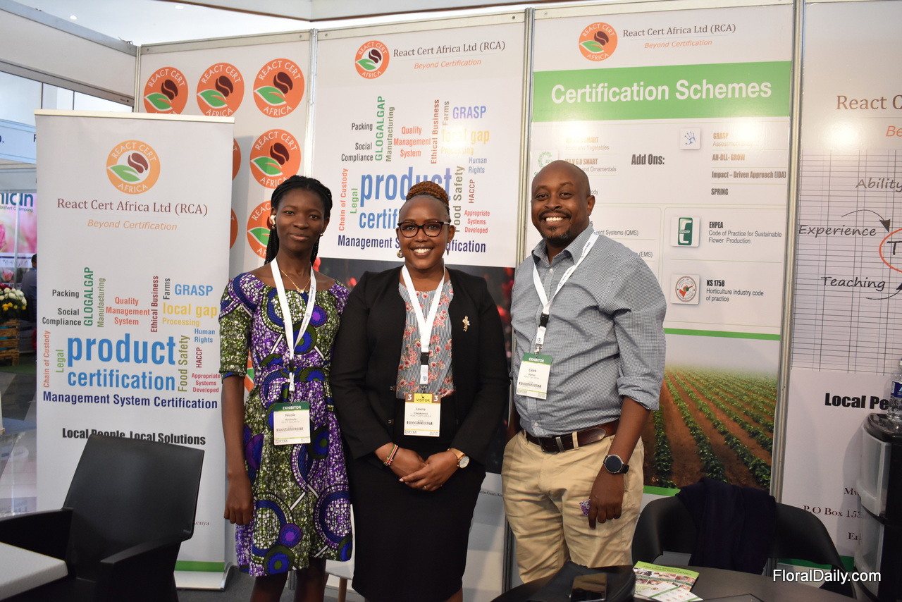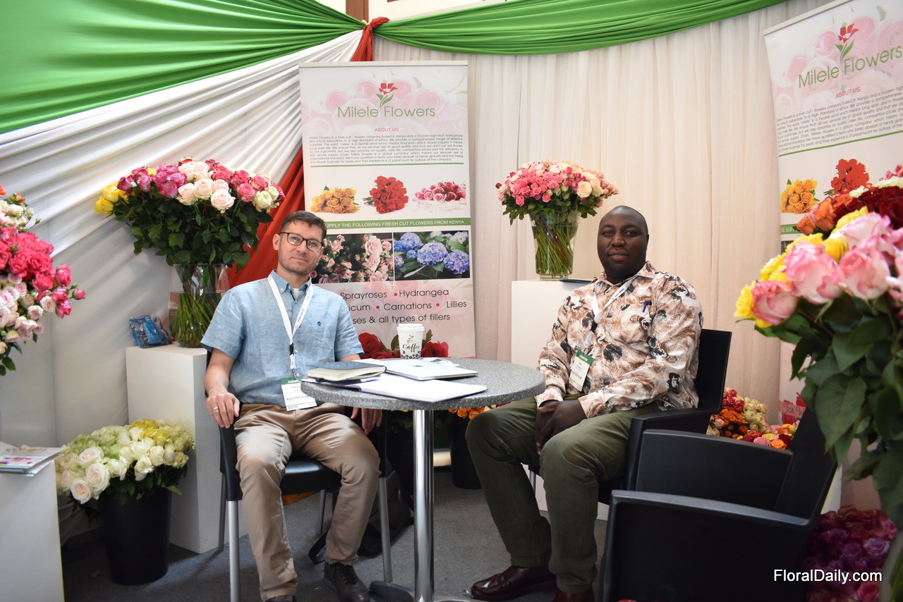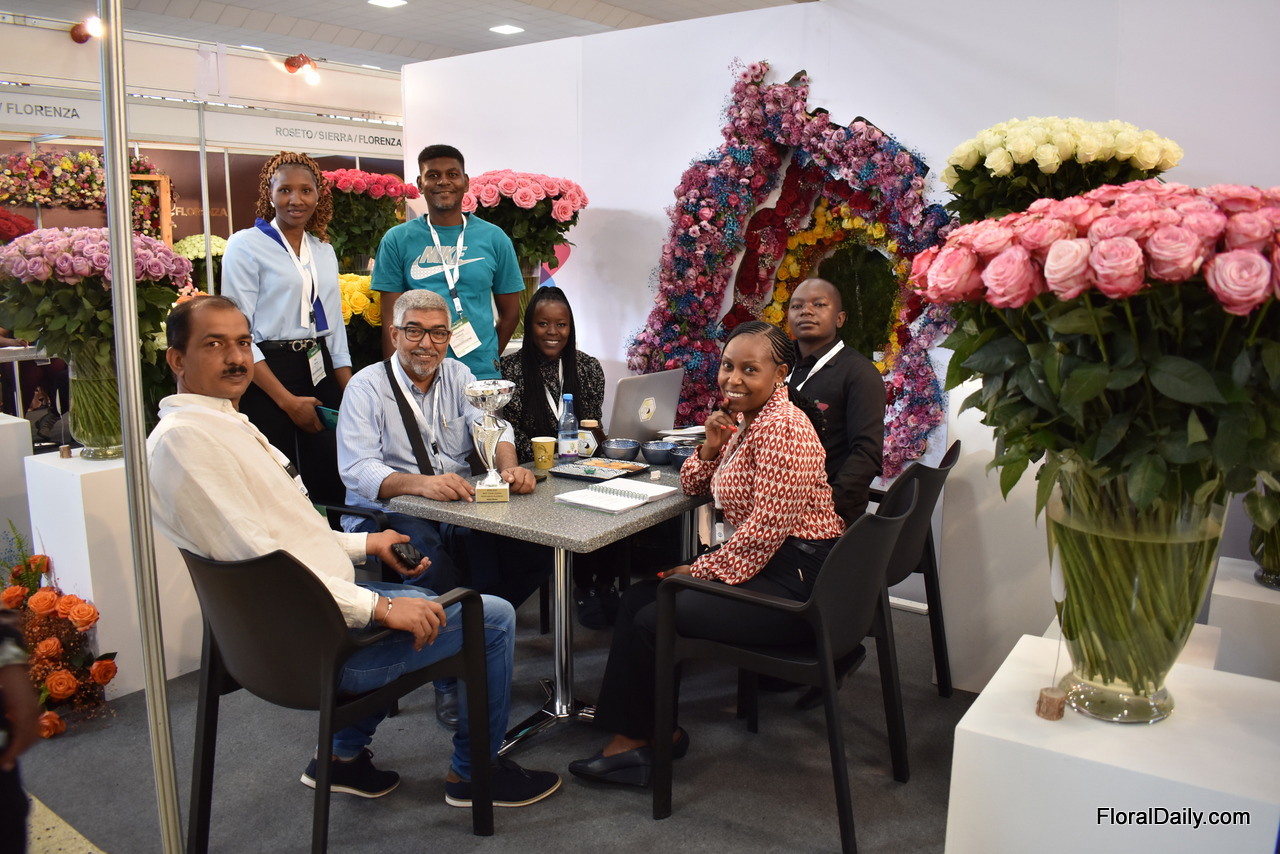 Youra Engel, Dave Hoekstra and James Kasyula. Dave and Philip Mambo (not in the picture as he was walking around at the exhibition) are the directors, Youra Logistic manager and James is CQR (Control Quality Report) manager. In 2021 they established this company that consolidates, does the documentation and Quality Control. “We are your eyes on the ground.” More on this company later on FloralDaily.