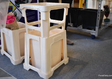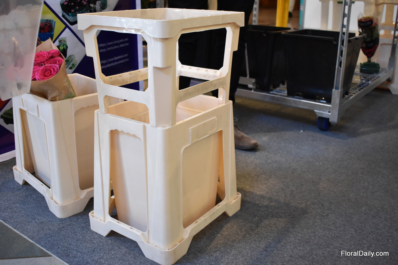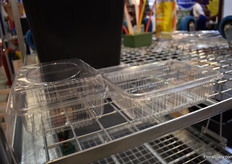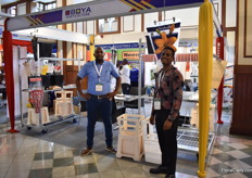 Allam Kaguchia, manager Oboya Horticultural Kenya and his son Myles. New in their assortment the auction buckets,  TB trolleys, branded sleeves and clamshells (for the soft fruit industry). Special about these buckets is that they have an extension.