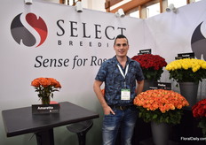 Michael de Geus of Select Breeding next to two of their new varieties, namely Red Bentley and Firefox.