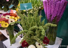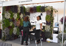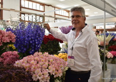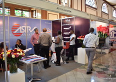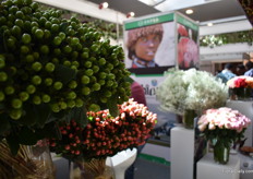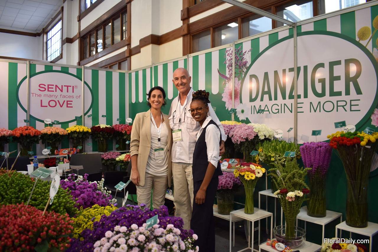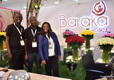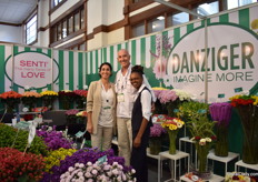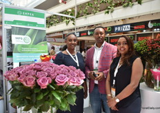 Anat Moshes, Shmulik Ben Harush and Esther Kanyeria of Danziger. In Kenya, the leading products of this Israeli breeder are still gypsophila Xlence, limonium series Safora and Green Dragon. And of course they brought their Senti series of roses (in the back of the picture). And what about new varieties? limonium Enchante and a green a new filler were being presented for the first time. And they see a comeback of the asters as demand is increasing.