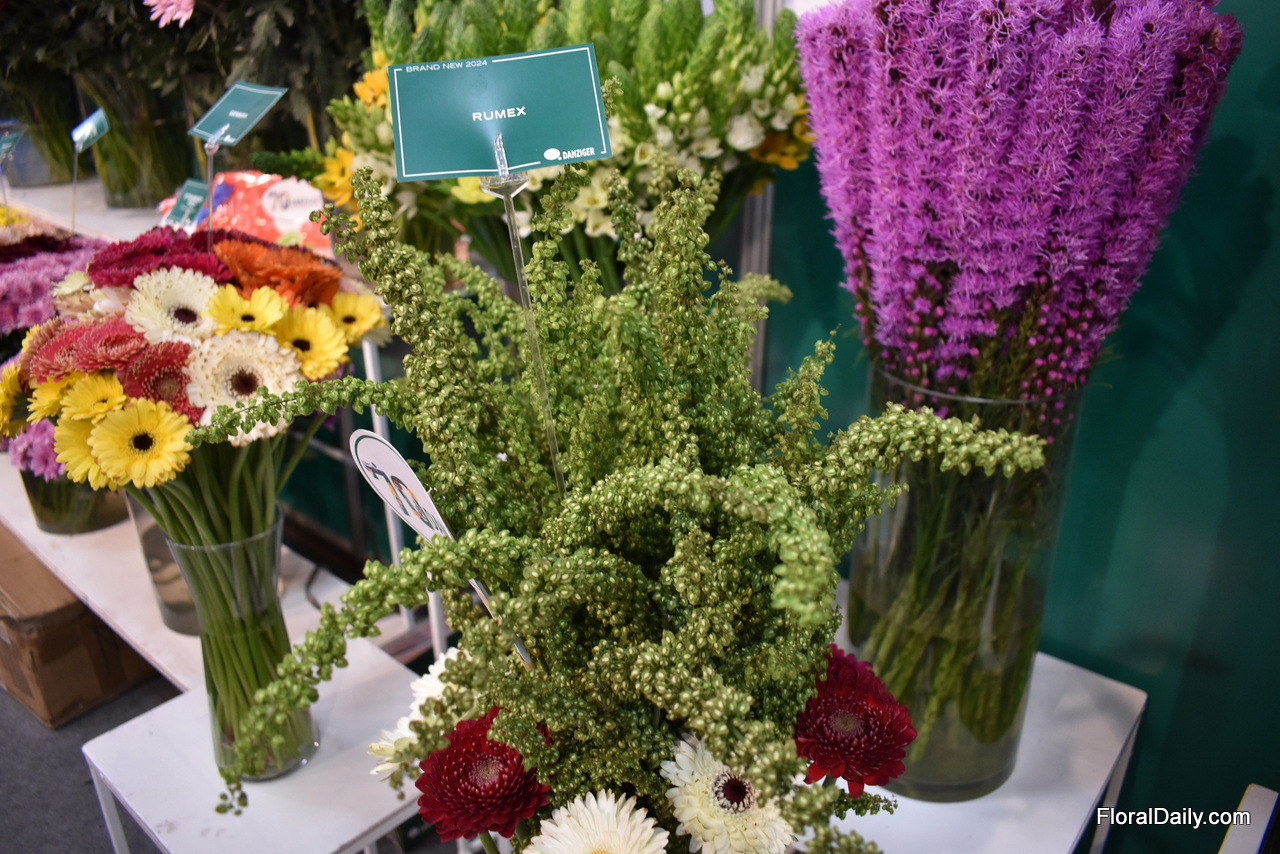 The newly introduced Rumex variety of Danziger. "It is an ideal fit for the current green trend. With its flexible inflorescence shape, long stems ranging from 90 to 150cm, abundant flowers, and strong presence, this variety offers endless options for creativity. Its graceful and flowing movements, coupled with its feminine softness, make it a perfect addition to any floral arrangement or design. Furthermore, Rumex can stand alone and still make a bold statement."
