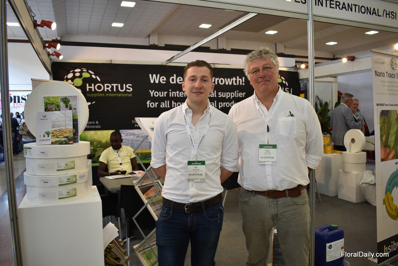 Gijs van der Pol of HSI and Peter van der Pol (son and father) of Stokman Roses. One of the highlights at the HSI stand is the paper of Fibercell, for propagators to make their own pots. Stokman, among others, is already using it for commercial production.