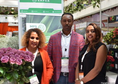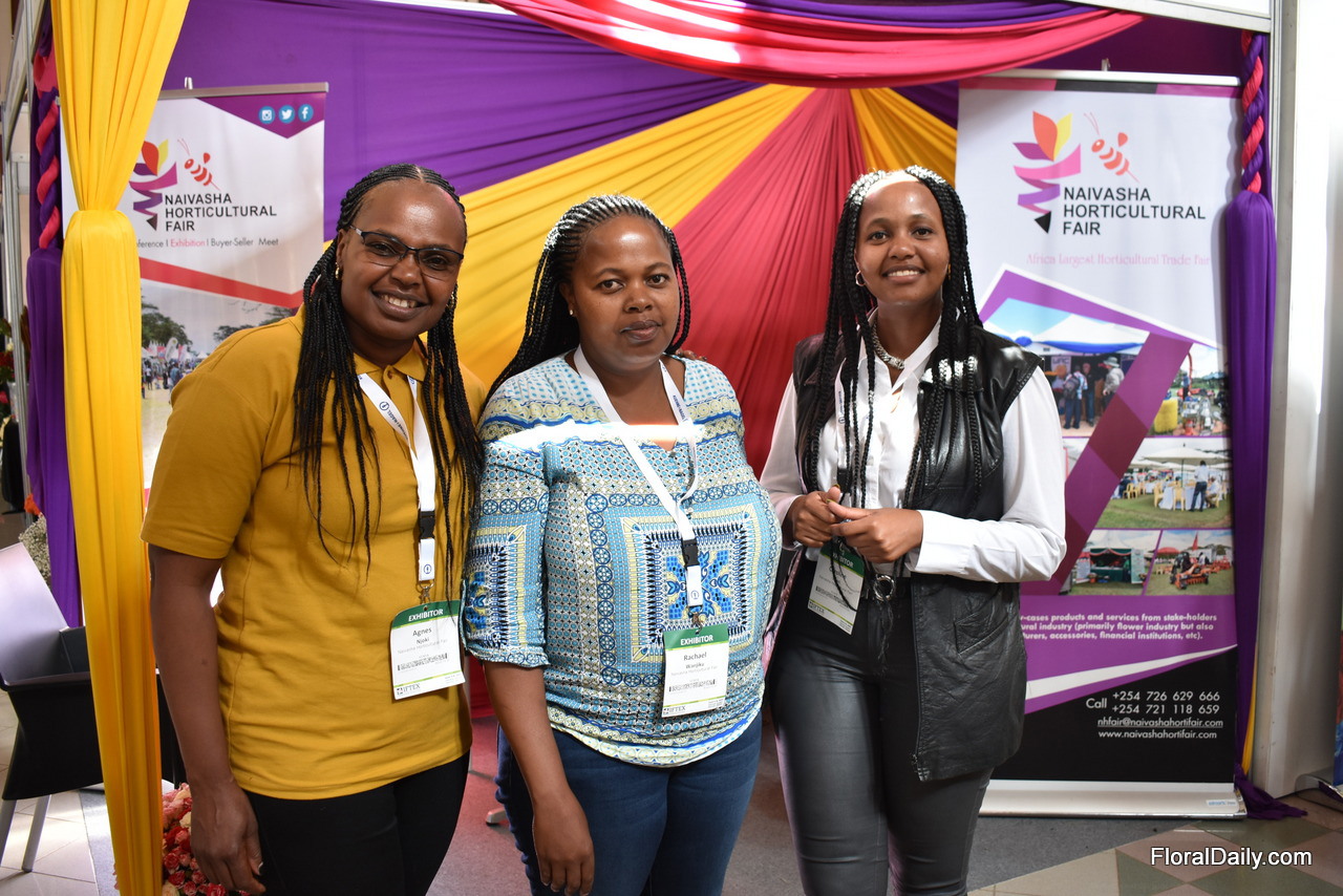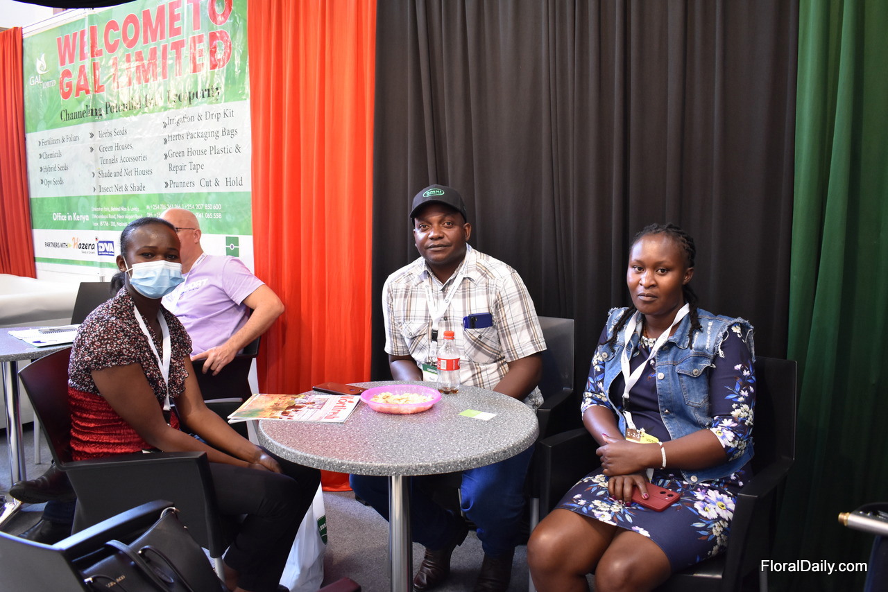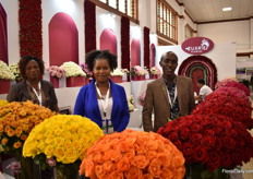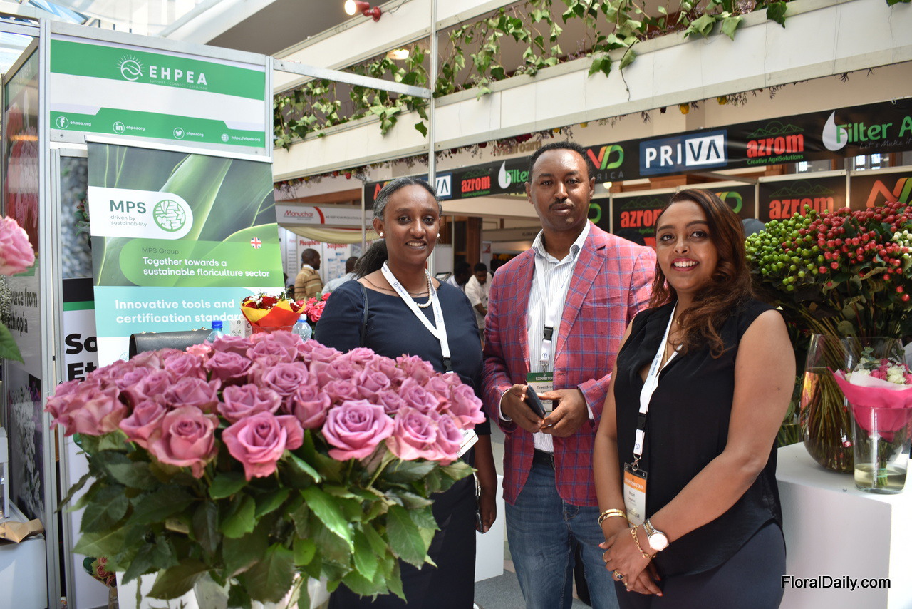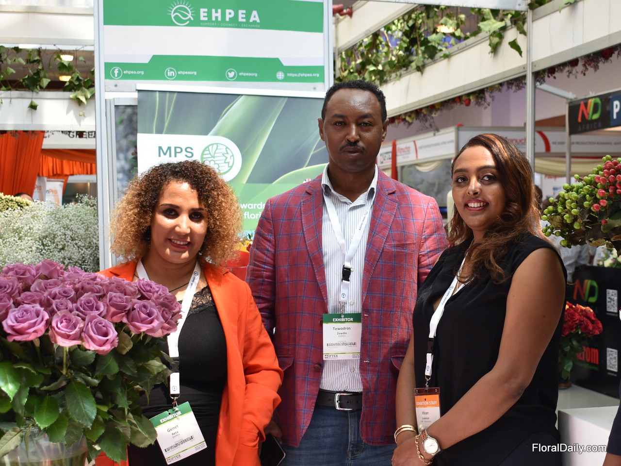 Kidist Wolde, of Tinaw Business one of the Ethiopian growers at the EHPEA stand with Tewodros Zwendie of EHPEA and Mizan Solomon of HPP Exhibitions.