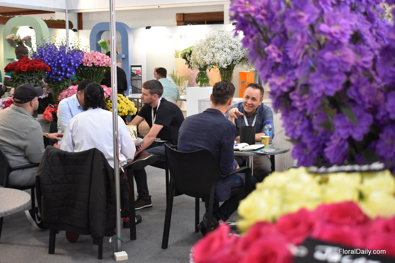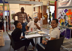 Roberto Bonanno of The Flower Hub talking with Jay Williams of Winfield Africa an Louise Scholtz of Unifli Roses.