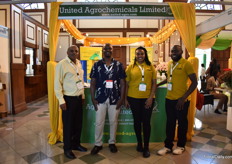 The team of United Agrochemicals Limited (with Jeremiah Aketch, a freelance marketer, second on the right) presenting some of their agrochemicals.