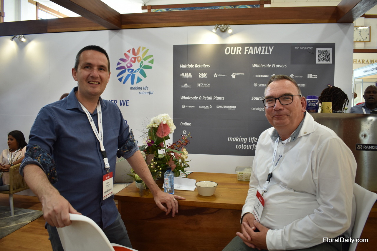 Arjan Kromhout of Coloriginz and Martin van Rijn of Van Dijk Flora at the Dutch Flower Group booth.