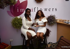 Joy and Wendy of Imani Flowers with silver the best stand design perishables award. They grow summer flowers, limoniums and kangaro paws in Nakuru.