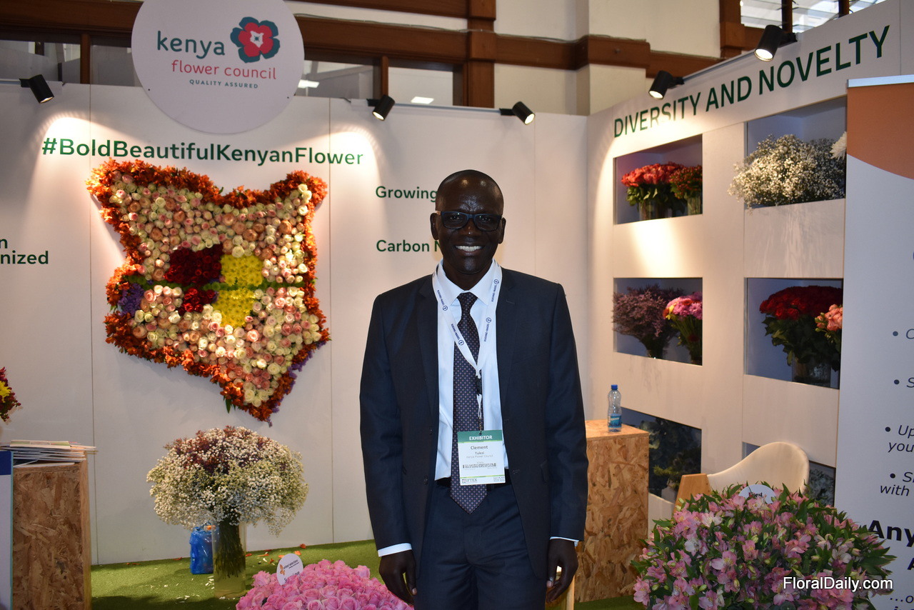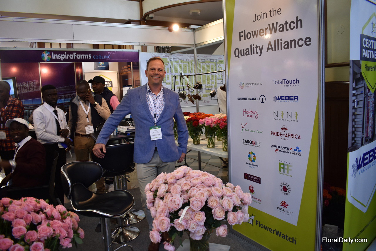 Jan Spek Rozen at the booth of Dümmen Orange, their agent in Kenya.