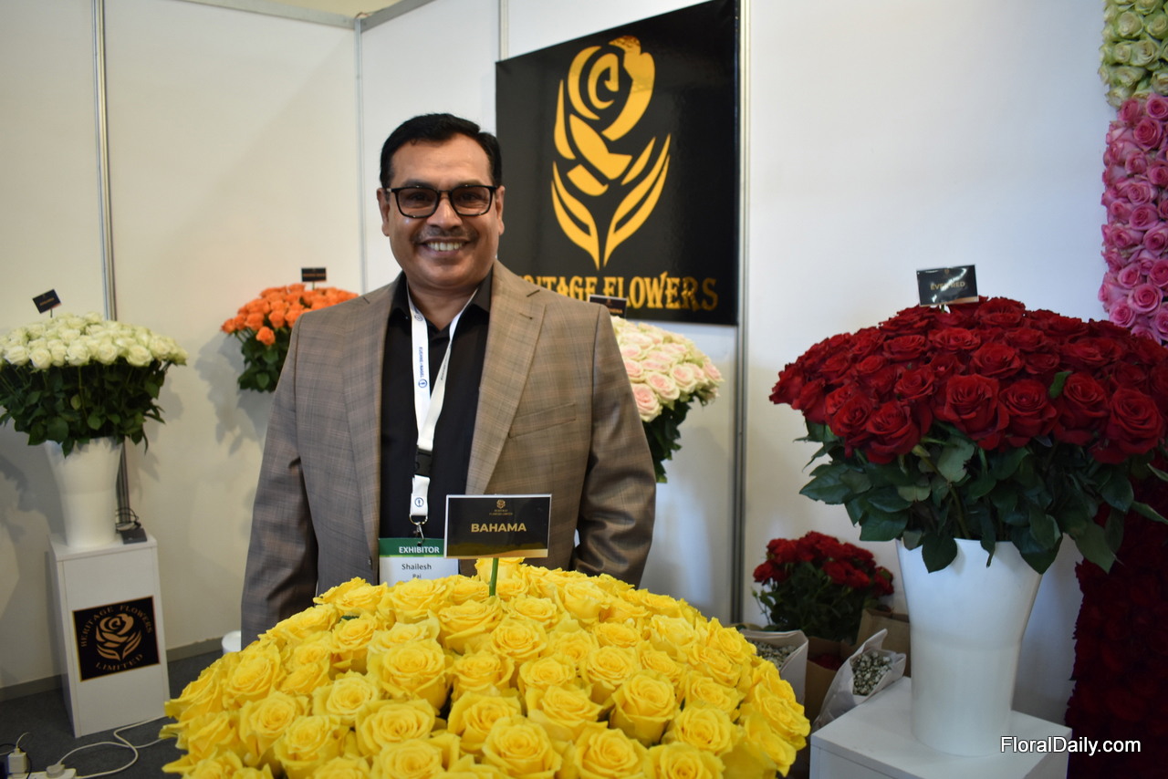 Shailesh Kunar Rai, managing director at Heritage Flowers with Bahama in front and Ever Red on the right side. First time they are exhibiting at IFTEX.