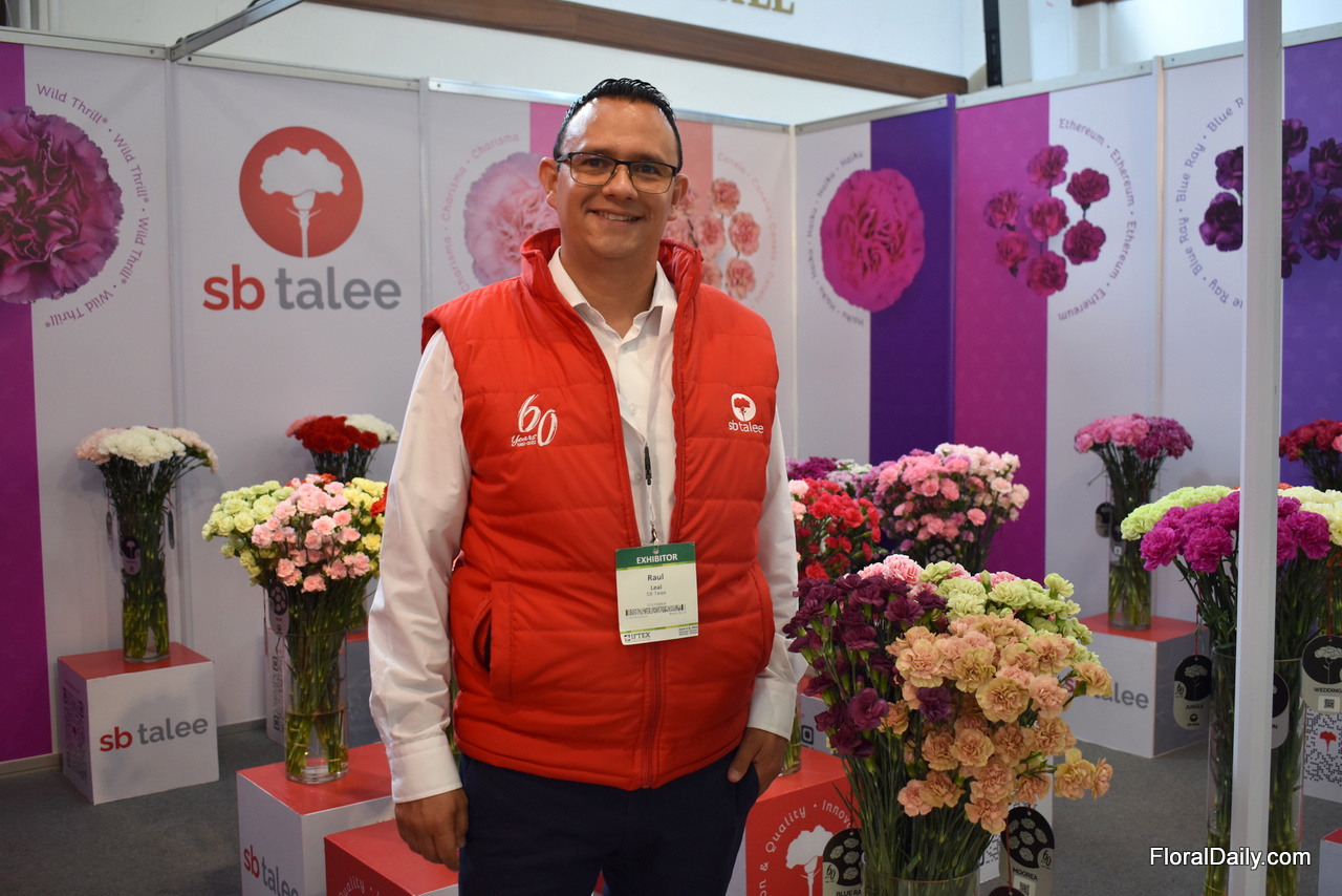 Raul Leal of SB Talee, this Colombian carnation breeder parenting many of its varieties. One of their varieties that is a new introduction is Canela, with a trendy color, Terra (on the right in the picture)