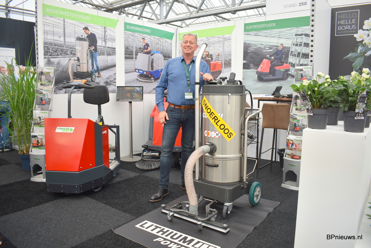 Patrick le Maître of Verhagen Leiden. They have been manufacturing industrial hoovers for 60 years. New is this wireless industrial hoover, the Comzu F3313 Battery. In an hour you can vacuum an area of 2500 m2.