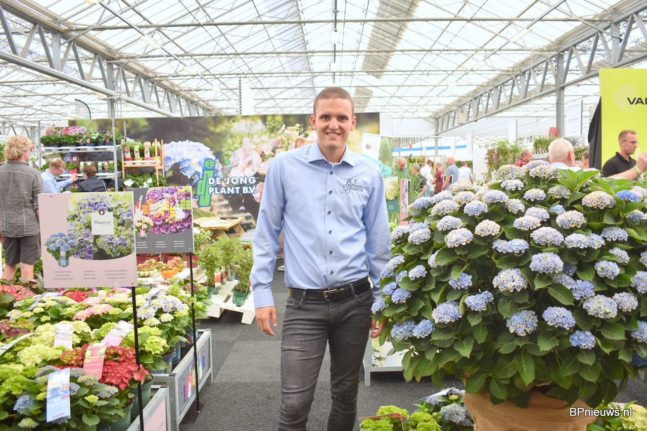 Dave van der Heiden of De Jong Plant next to the Magical revolution hydrangea.