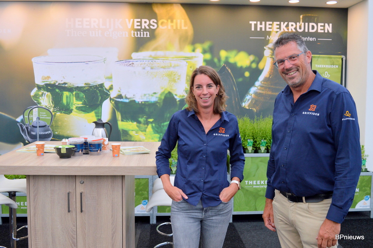 Femke de Jong and John Frederiks of Griffoen make work of tea. Tea is not new at the nursery, but they have been increasingly expanding it with the brand Tea Herbs in recent years