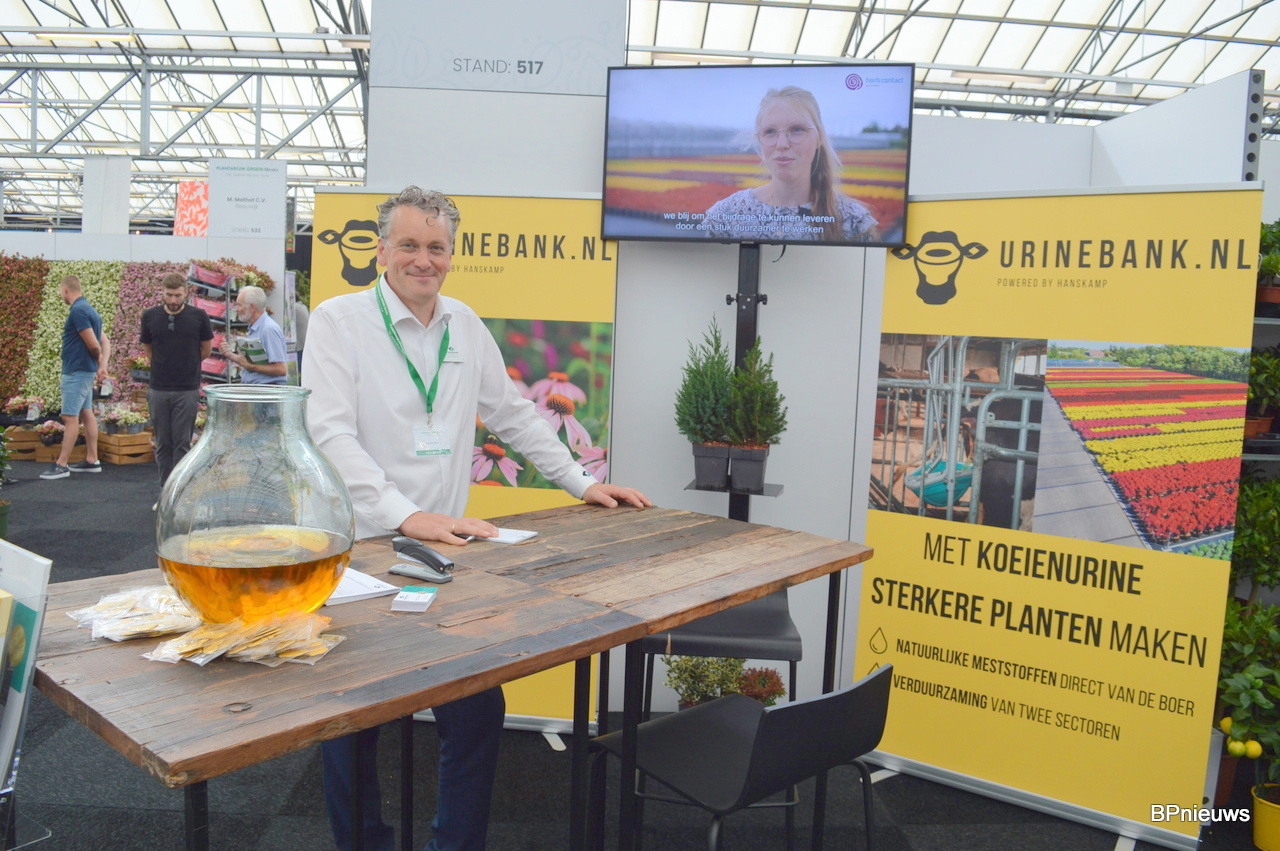 Henk Hanskamp is inventor and creator of urinebank.nl. The dairy farmer has nowhere to go and cow urine - the vase on the table contains apple juice, by the way - is a natural and 'pure' fertiliser. 1 and 1 is 2, 'we should not work against nature but let it do its job' and use precious nutrients effectively.