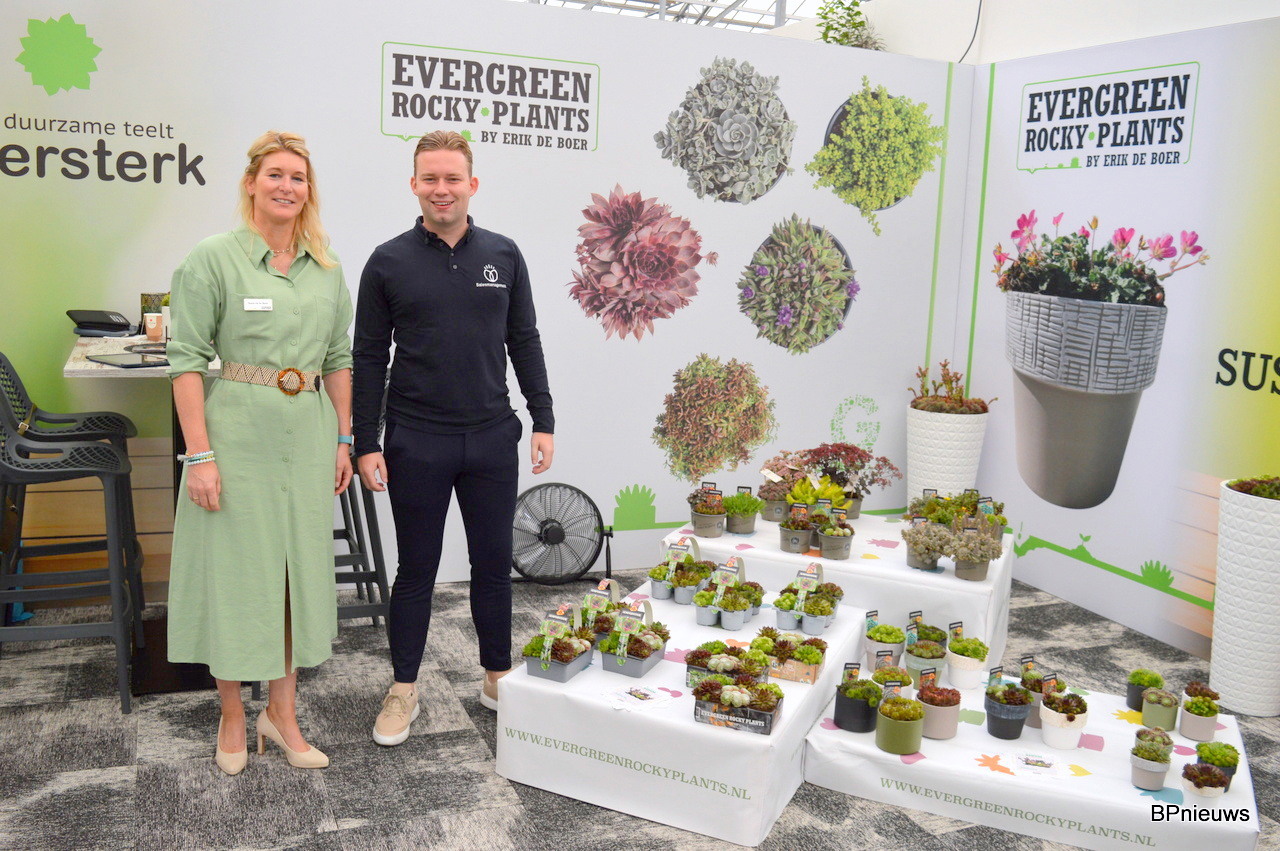 Chantal van der Muren of Evergreen Rocky Plants, together with Tim van der Mout of the Sales management department at Royal FloraHolland, who recently lent a hand in sales