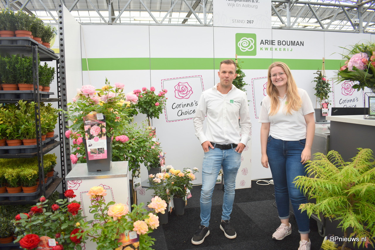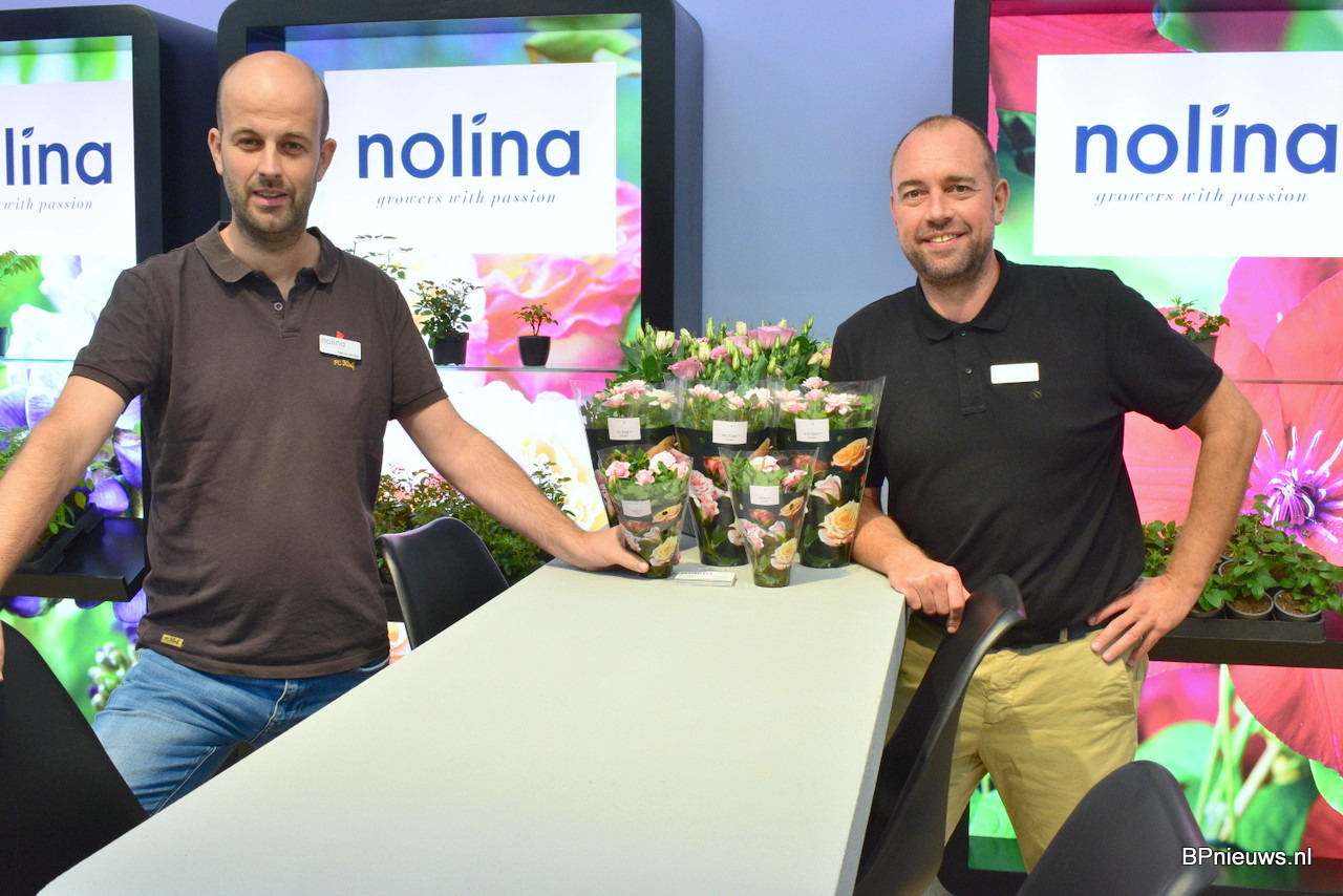 Peter van den Hem and Steef de Lange promote their Pia and Gigi potted roses. The Pia and Gia are the Pink and Red-white, double-coloured pot roses. Both varieties are available in pot sizes 10.5 and 7cm.