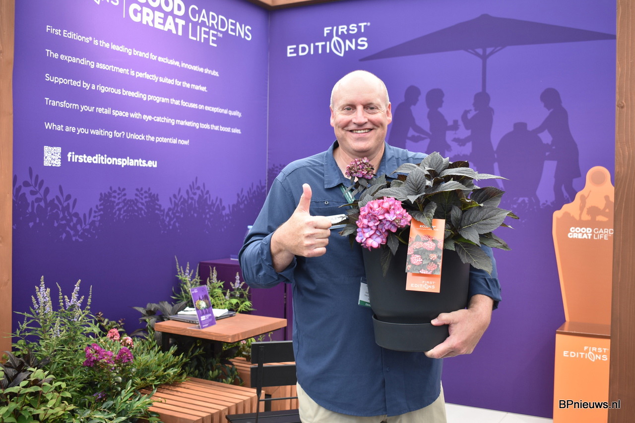 Alec Charais of Endless Summer and First Editions with the new hydrangea Eclipse in Forst Editions. Endless Summer and First Editions are US brands introduced in Europe almost 20 years ago.