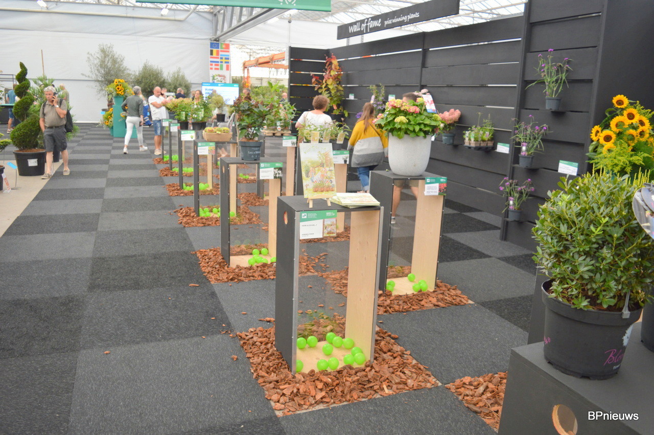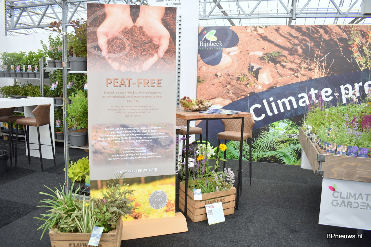 Here a banner at the Rijnbeek booth with more information on peat-free cultivation.