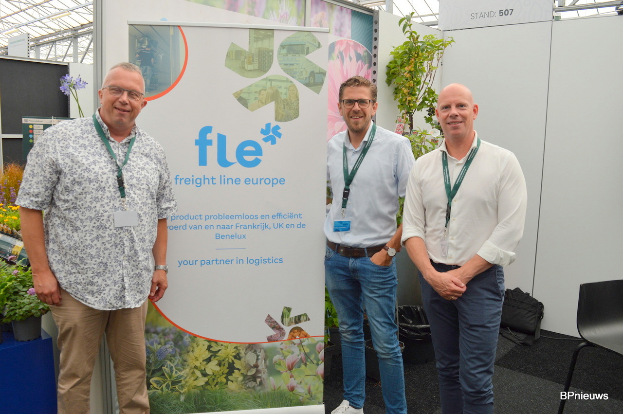 Mark van Velzen, Victor Vijverberg and Bert de Zeeuw of Freight Line Europe, which has been transporting more and more flowers and plants in recent years, especially in the UK. A new logo & slogan were also presented at the fair