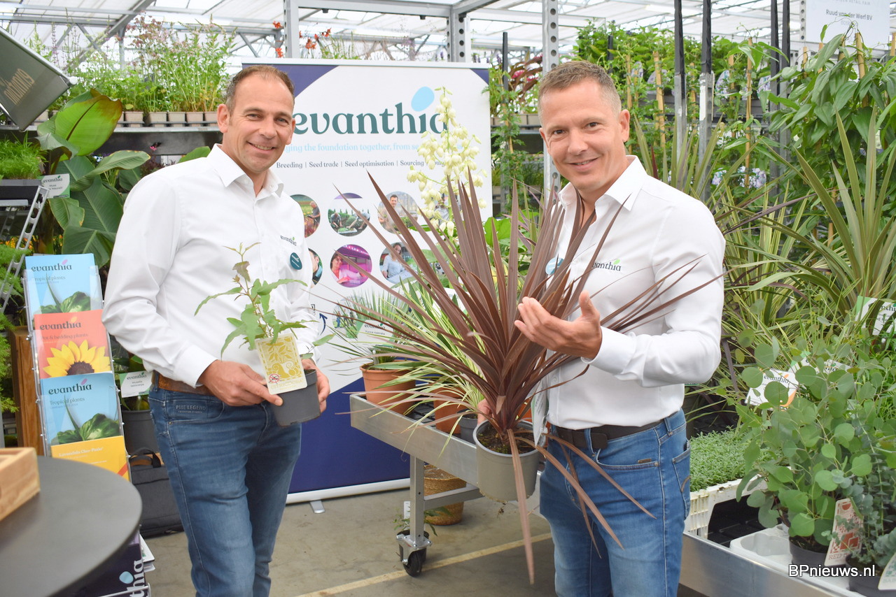 Jeroen Persoon and Tim Hoeksema of Evanthia. Jeroen with the Eucalyptus Citriodora, not only relieves the airways, also repels mosquitoes. Citriodora is part of a series of 12 species. Tim with the Cordyline Redstar, also part of a series of 12, exclusive species.