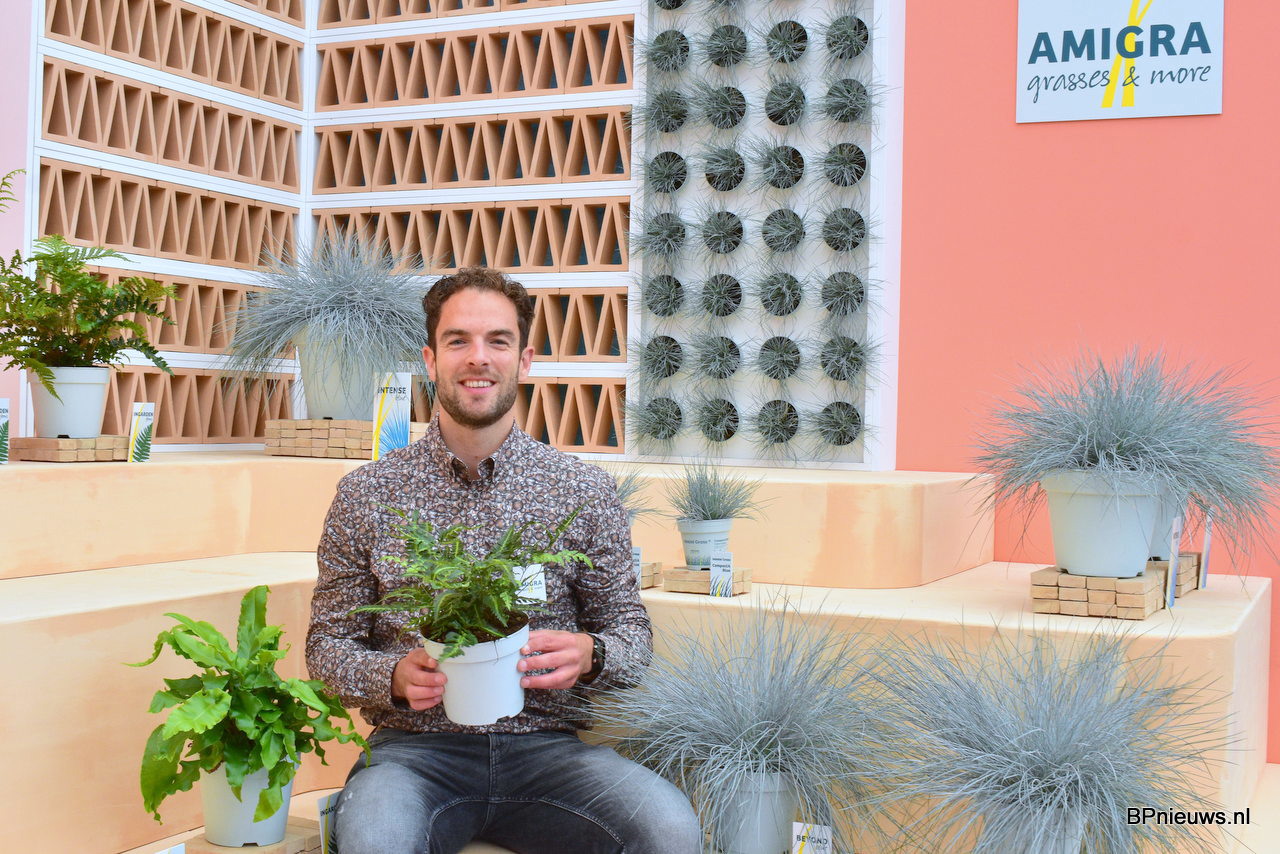 Roy van Kester of Amigra was at the fair with the new stand and the new ferns; Arachnoides Arisata "Variegata" and the Scolo Pendrium. Of course, their Festuca Glauca Intens Blue was also well displayed. All the products in their blue pots make for a luxurious appearance.