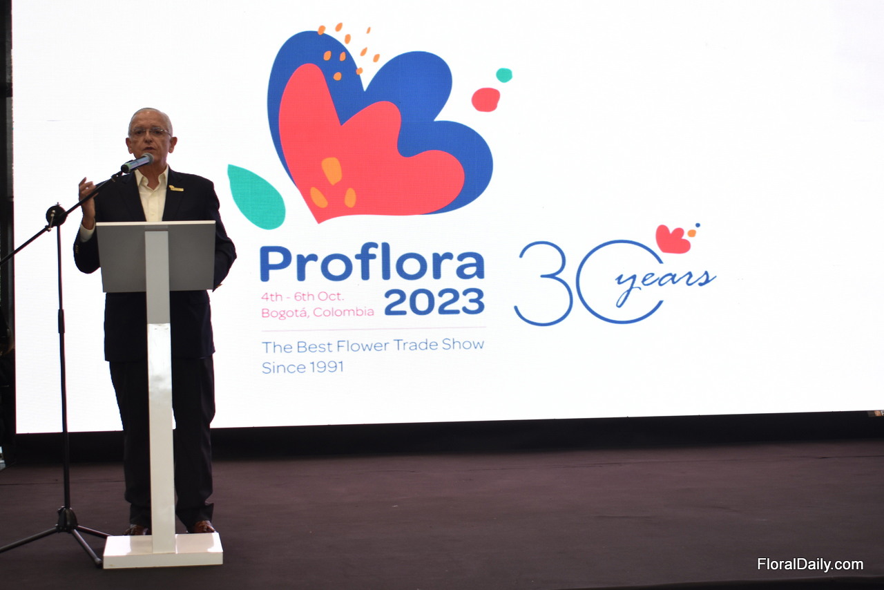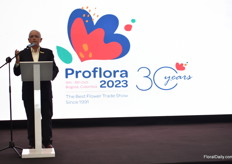 Augusto Solano, President of Asocolflores, the organizers of the trade show, welcoming every one and looking back at the last 30 years. Did you know that Proflora started in cattle stalls?