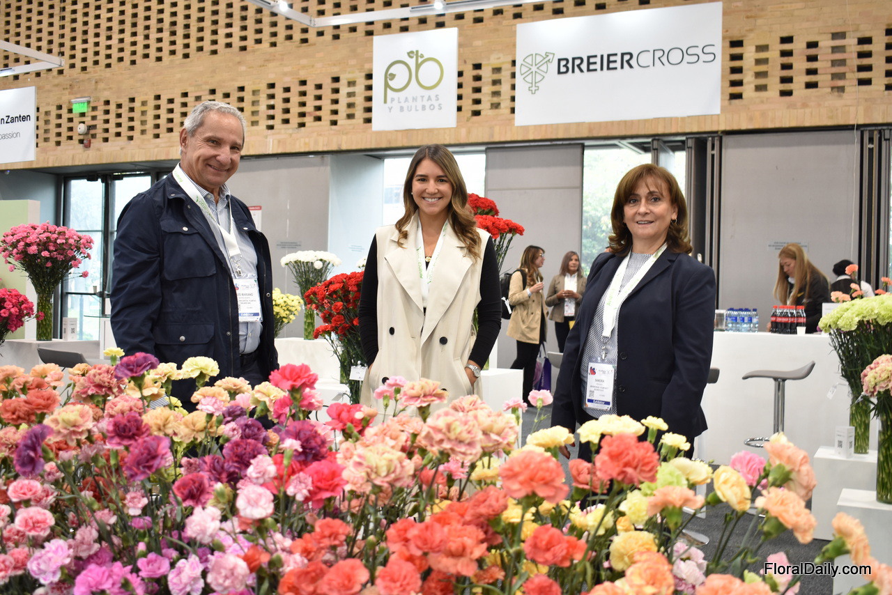 Angela Gomez and Diego Vargas of La Gaitana Farms with their customer from Poland Kees van Rijn of Bart Kwiaty in the middle.