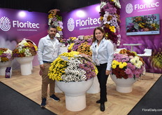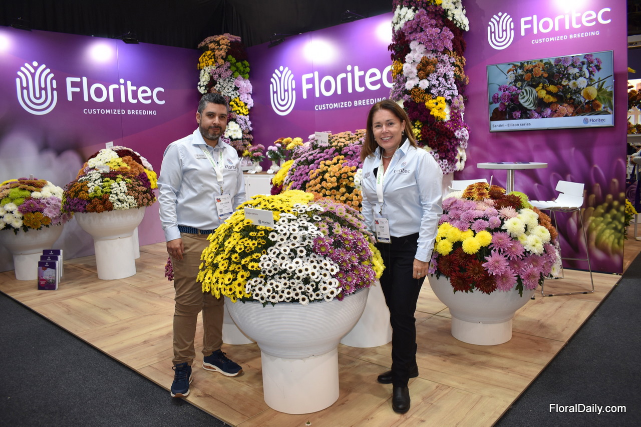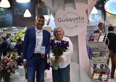 Juan Alajandro of Guaqueta Trading and Sonia Janssen of Evanthia, promoting their lisianthus Minilissi.