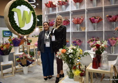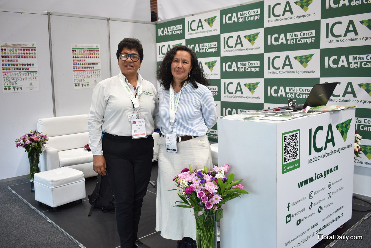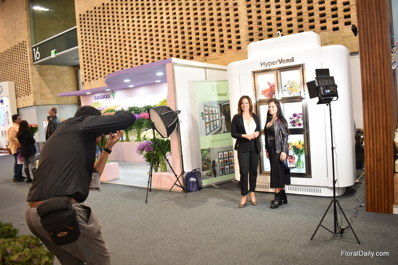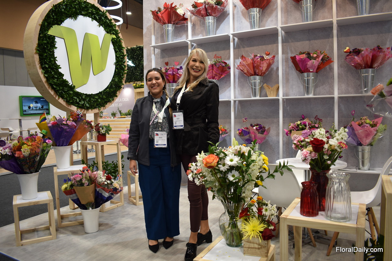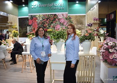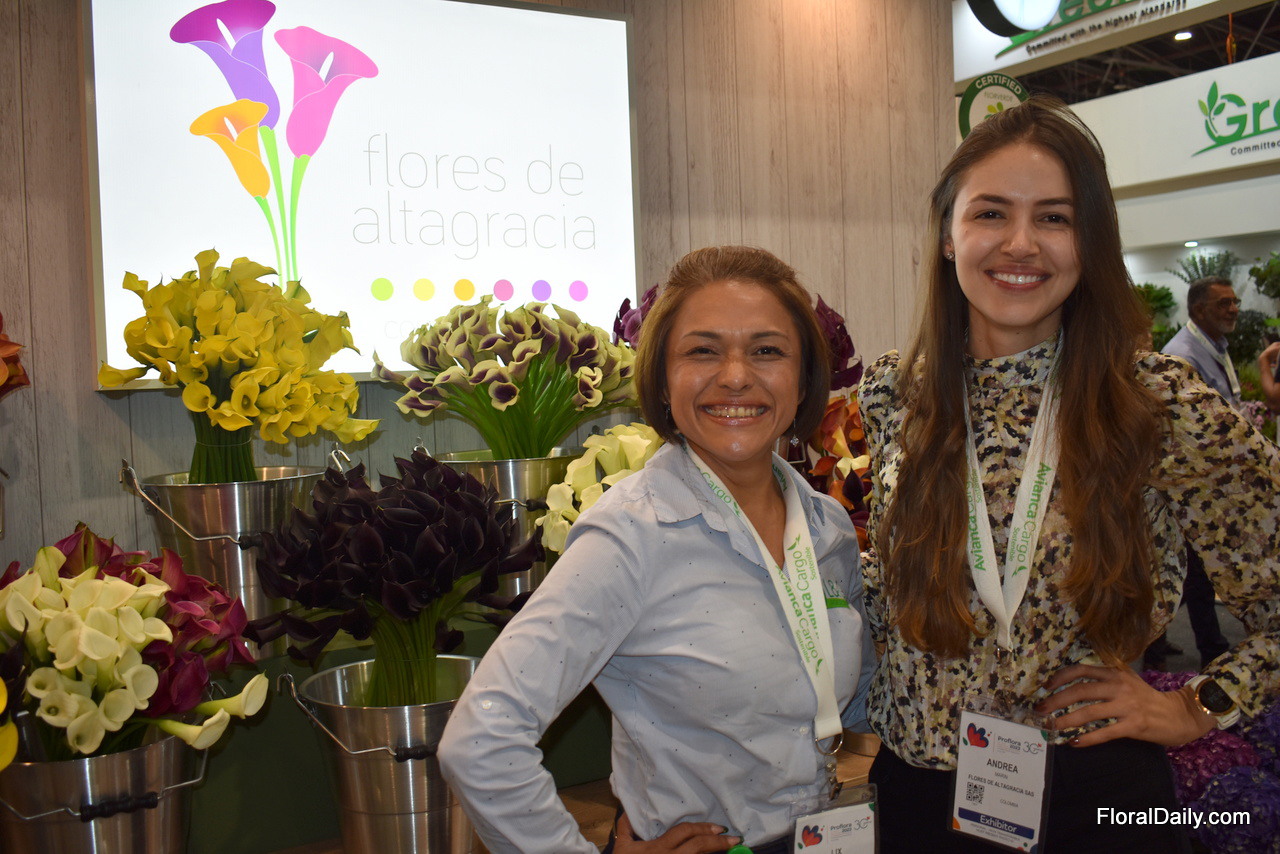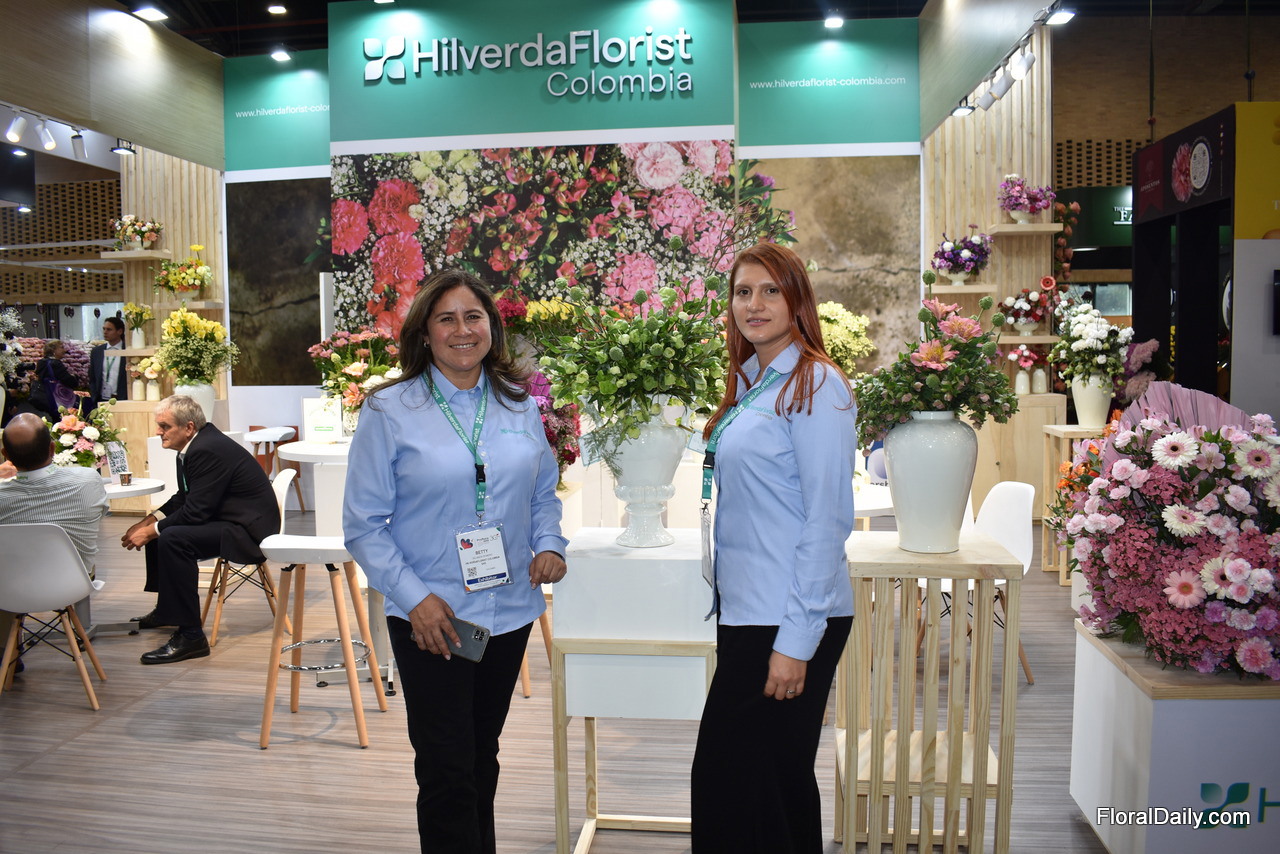 Betty Velandia and Pola Coba of HilverdaFlorist, with their most famous flowers, Scabiosa Dali and Helleborus Magnificent Bells, in the stand, attracting a lot of attention.