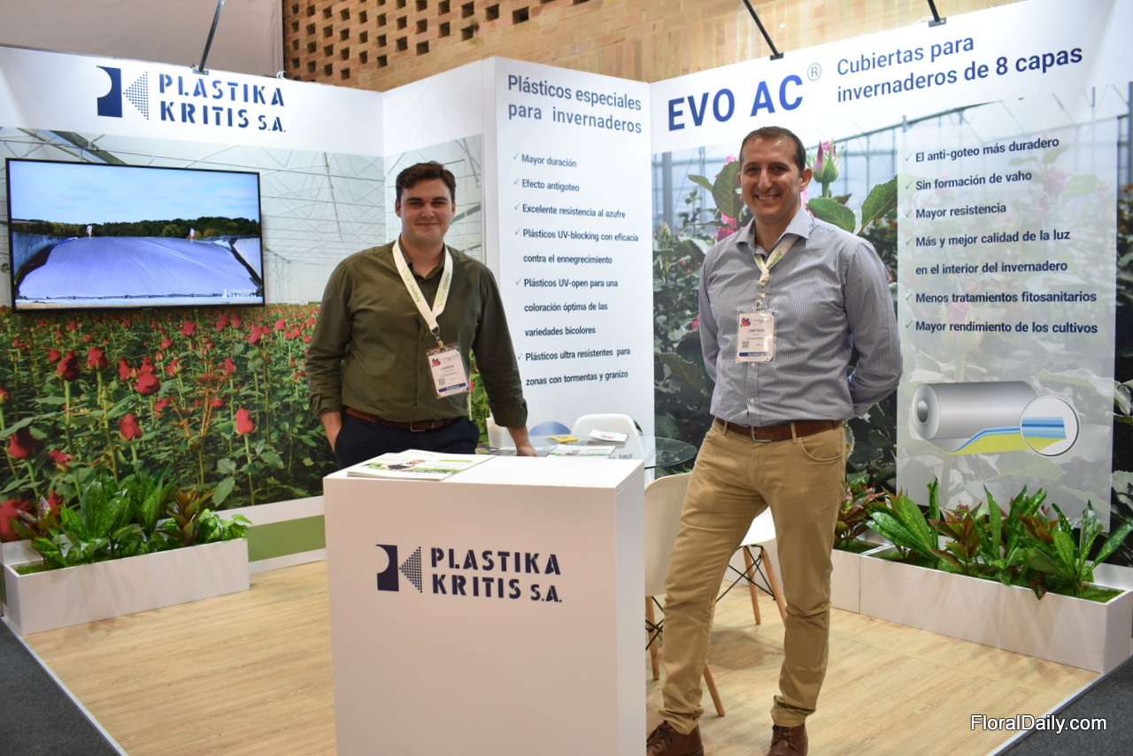 Lambros Assariotakis and Dimitrios Millios of Plastika Kritis, for the first time at the exhibition as exhibitors at Proflora. “We are here to introduce our high-quality plastic to Colombia.”