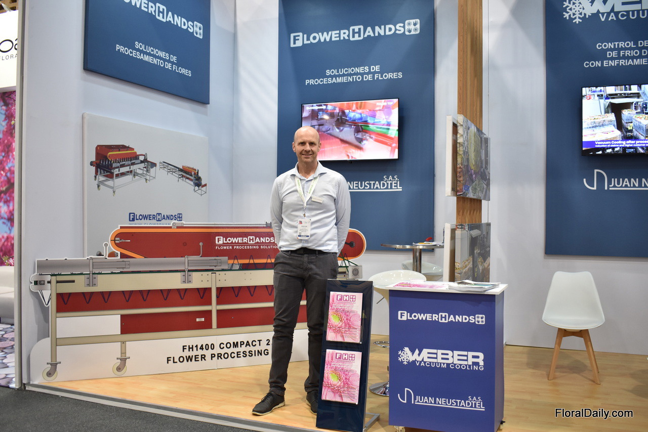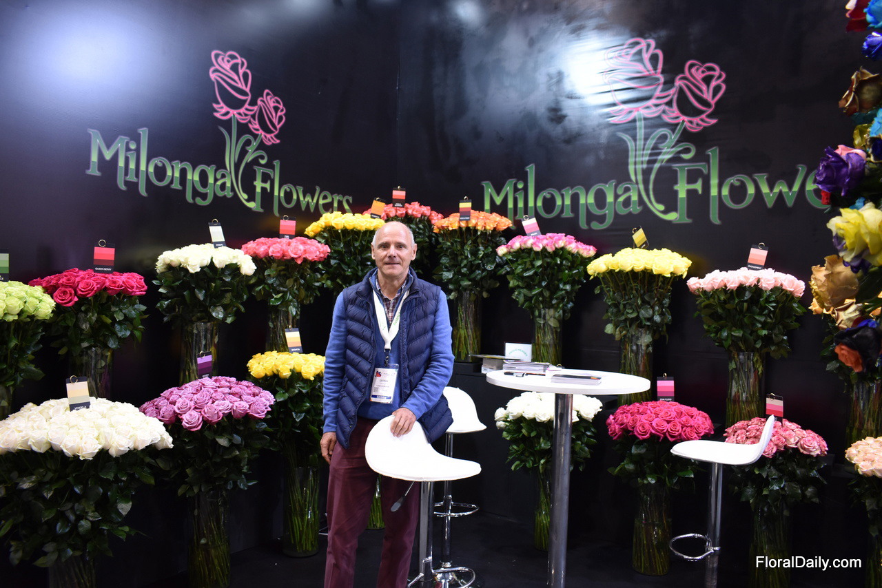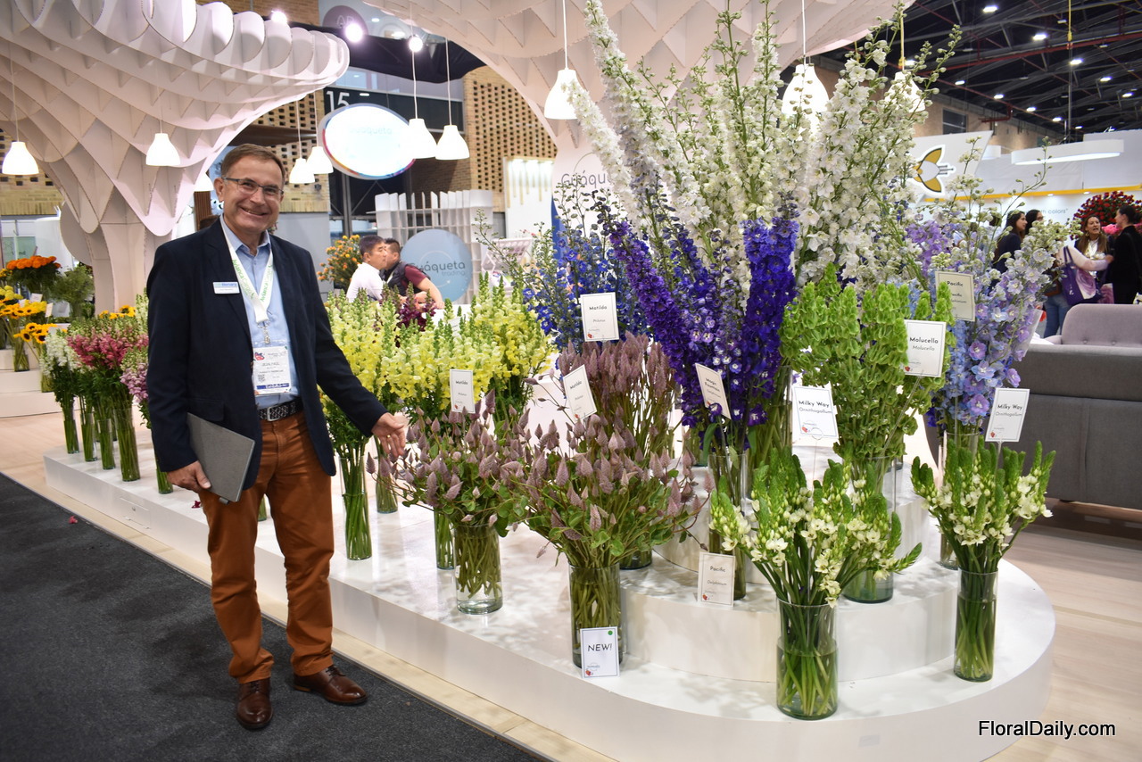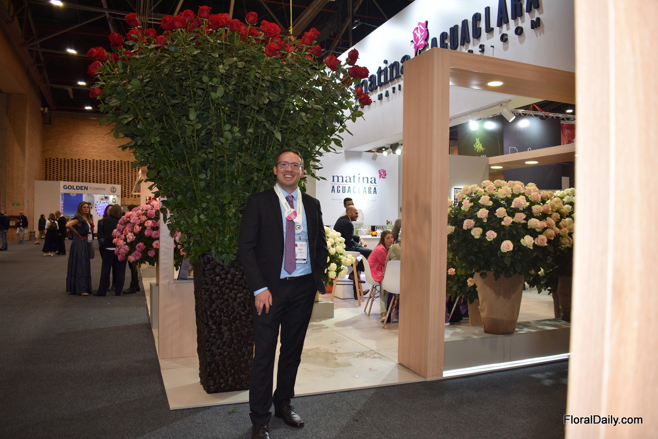 Daniel Velez of Suasuque. They presented a lot of new new varieties, Tangerine, Fashionista, and Martini are some of them. What’s again becoming more popular is white, even in the fall, he says. Most of their flowers go to Italy.