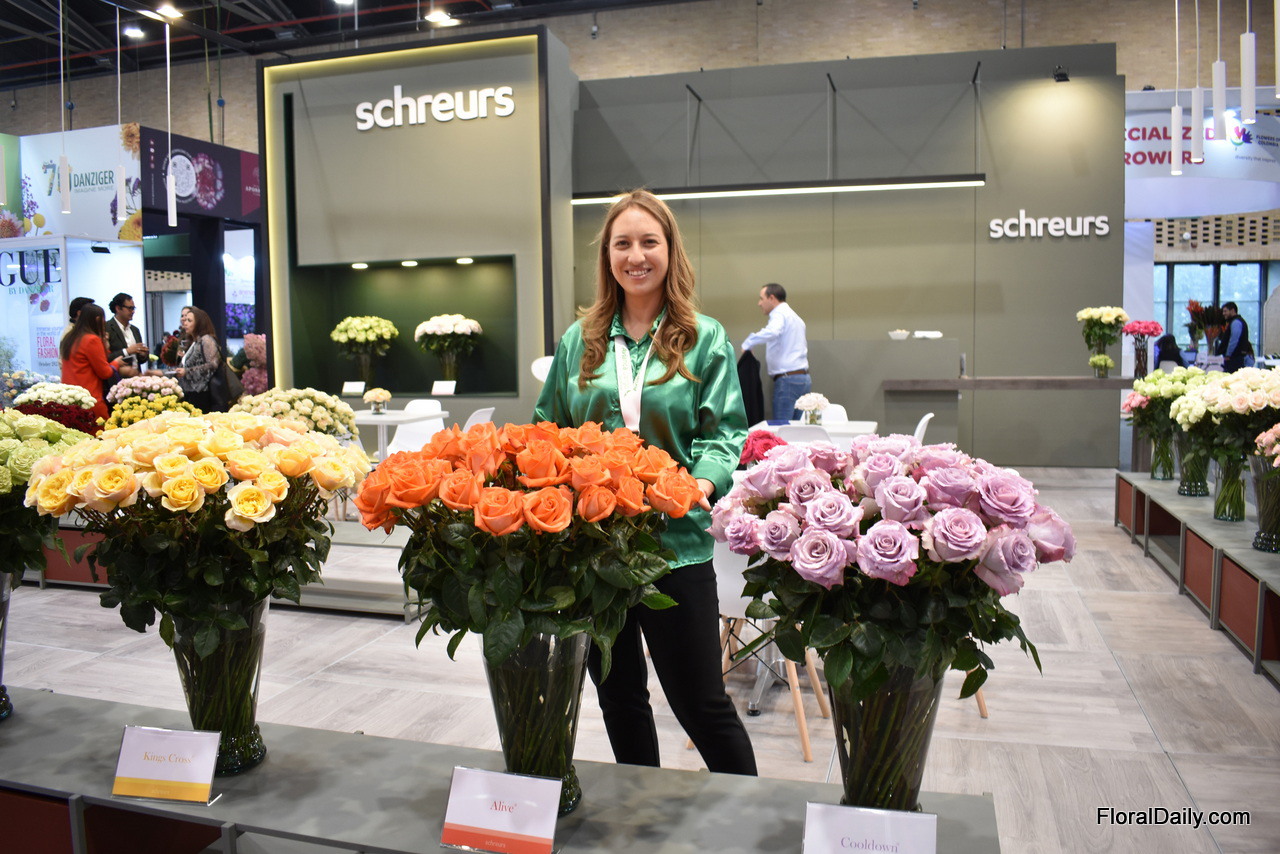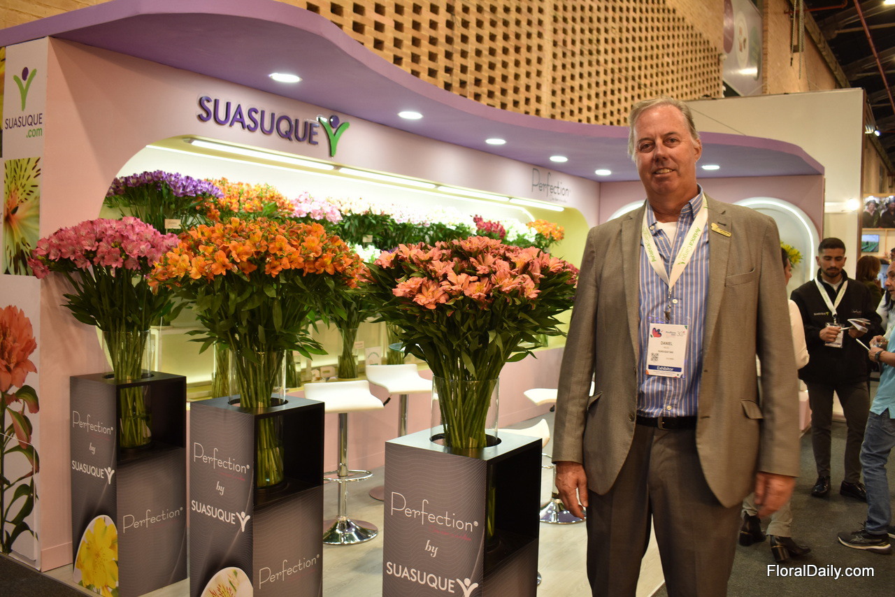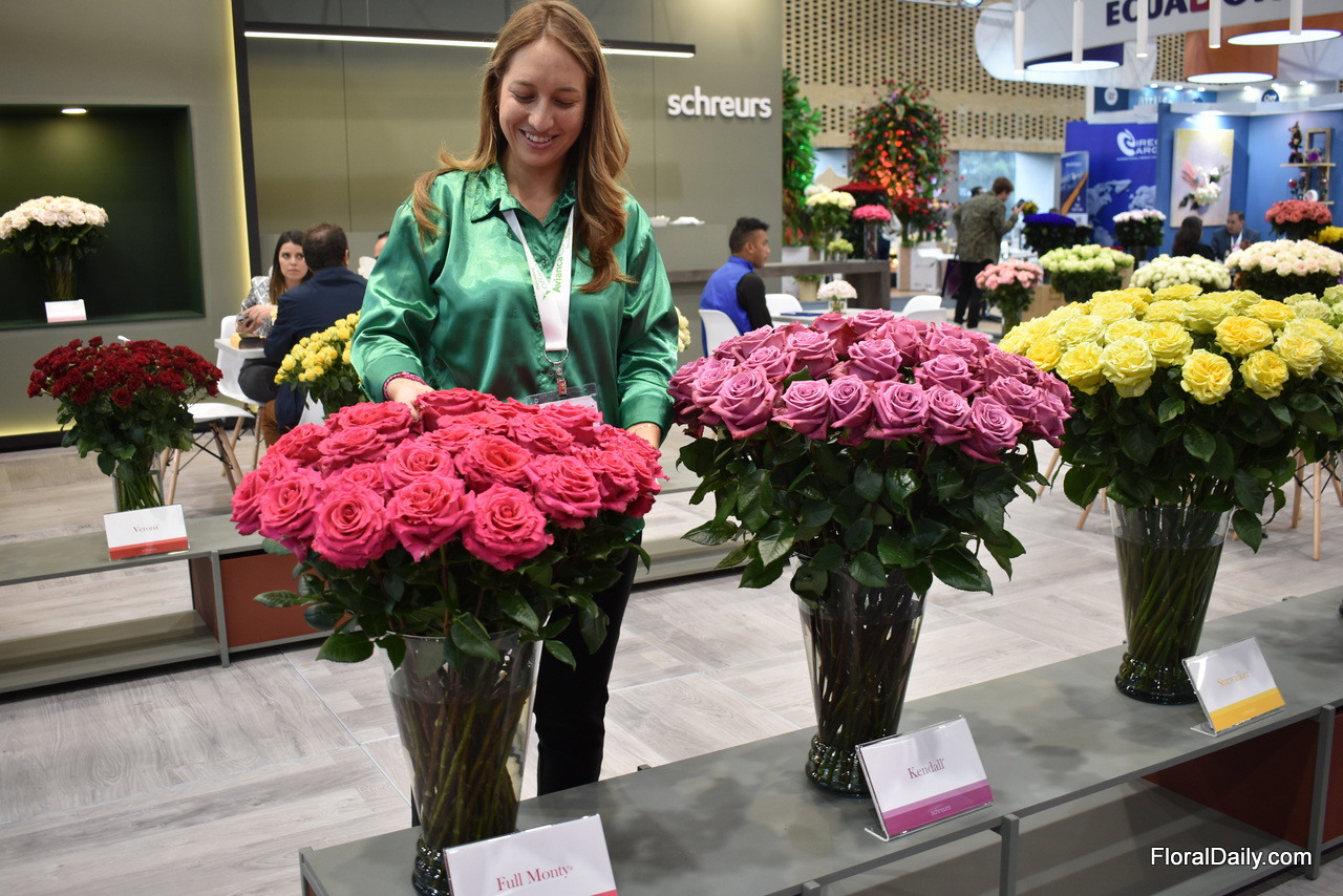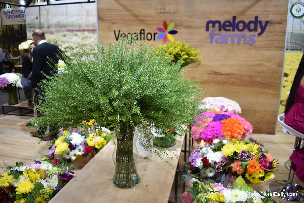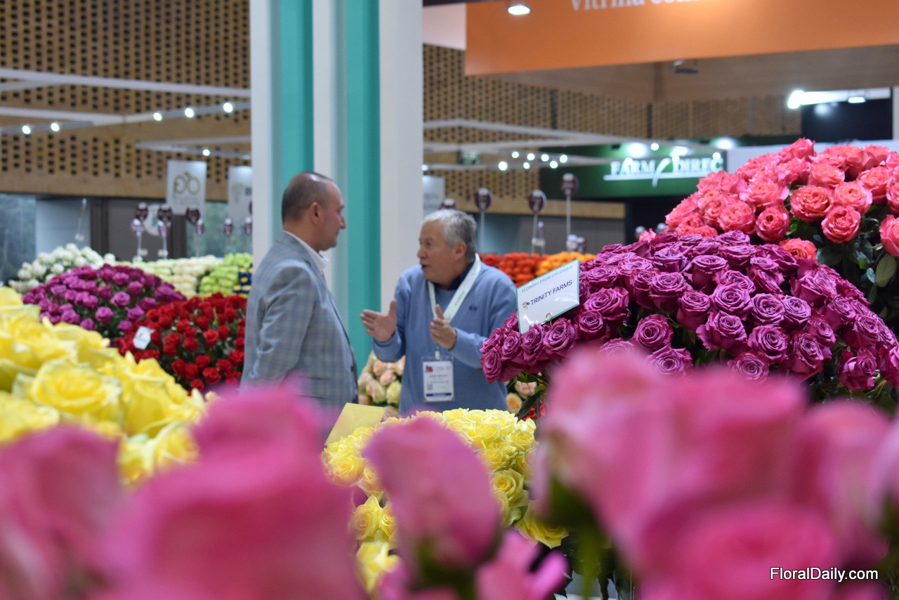 Daniel Velez of Suasuque. They presented a lot of new new varieties, Tangerine, Fashionista, and Martini are some of them. What’s again becoming more popular is white, even in the fall, he says. Most of their flowers go to Italy.